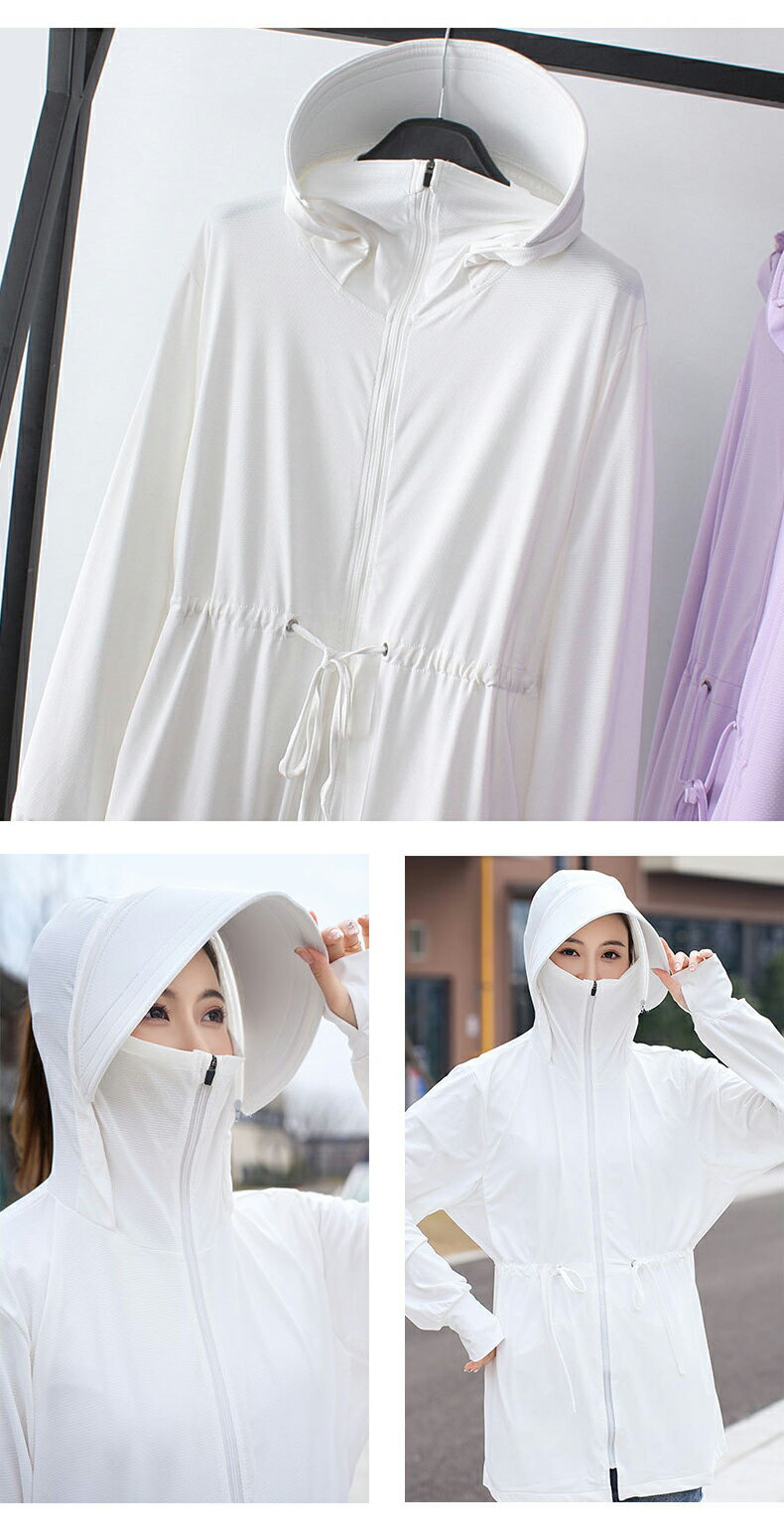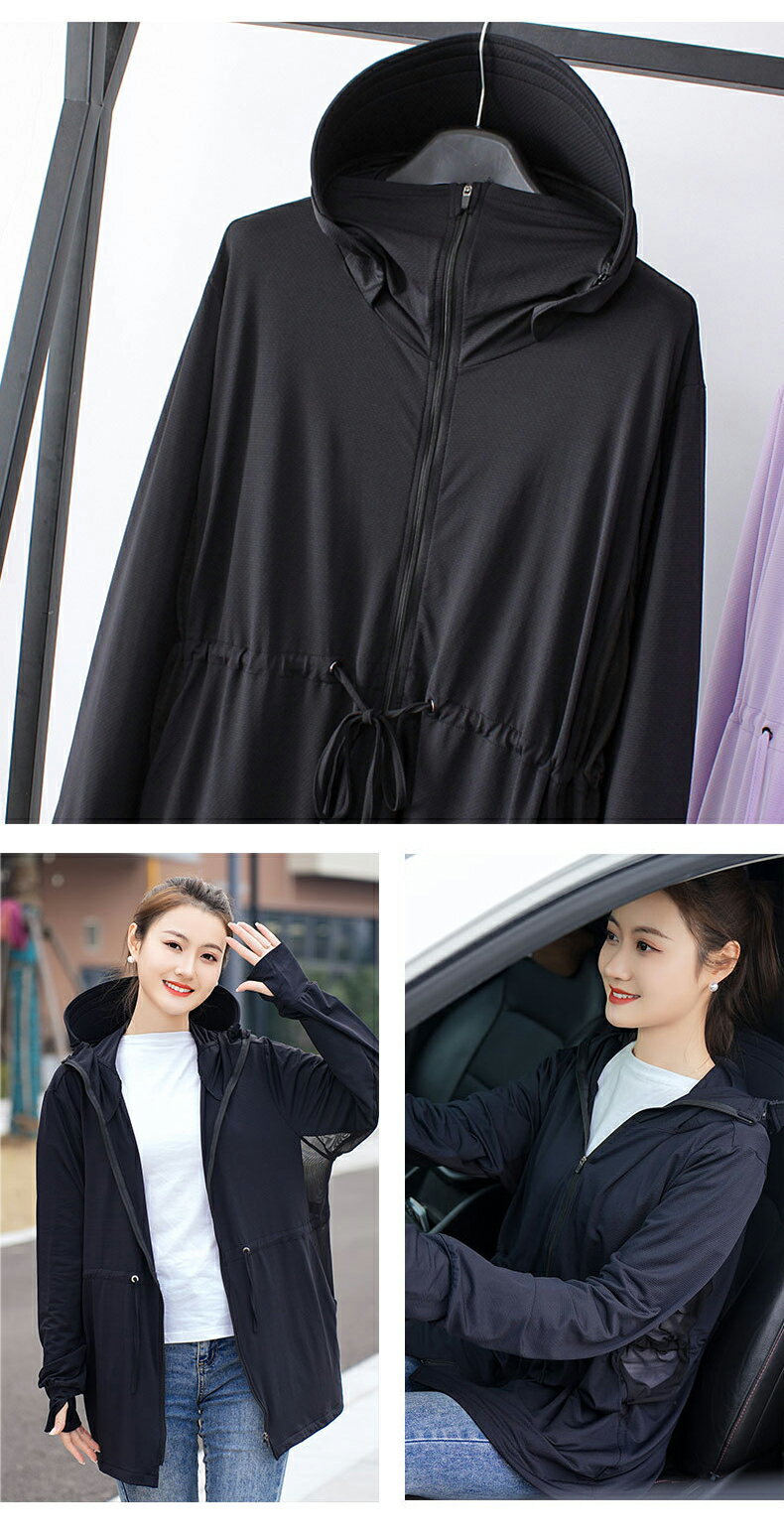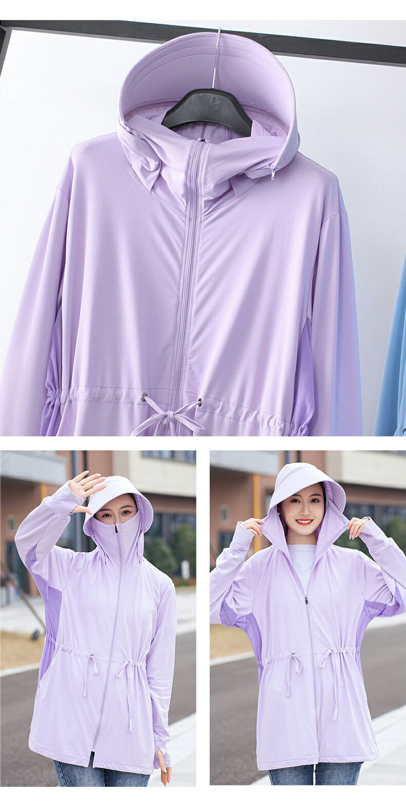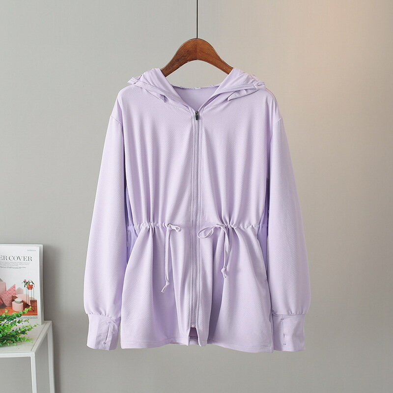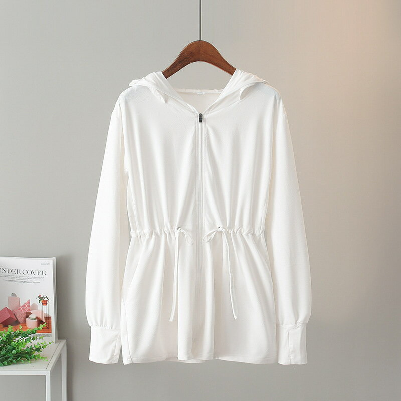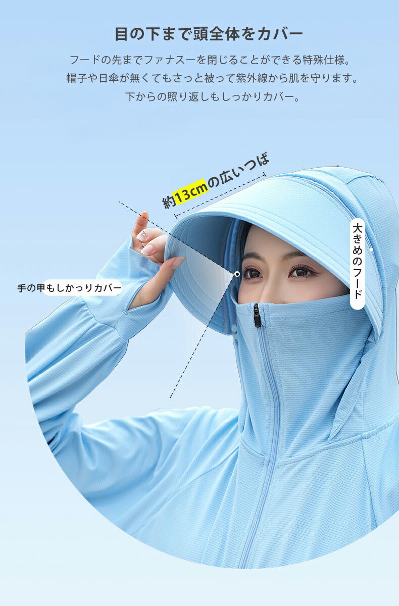 UVパーカー UV UPF50+ UVカット レディース オーバーサイズ 長袖 日焼け止め 涼感 冷感 -5℃ パーカー ギャザー ウエスト リボン 調整可 トップス 体型カバー ビッグシルエット フードジップ アウター 紫外線 日焼け対策 薄手 伸縮性 涼しい 大きいサイ