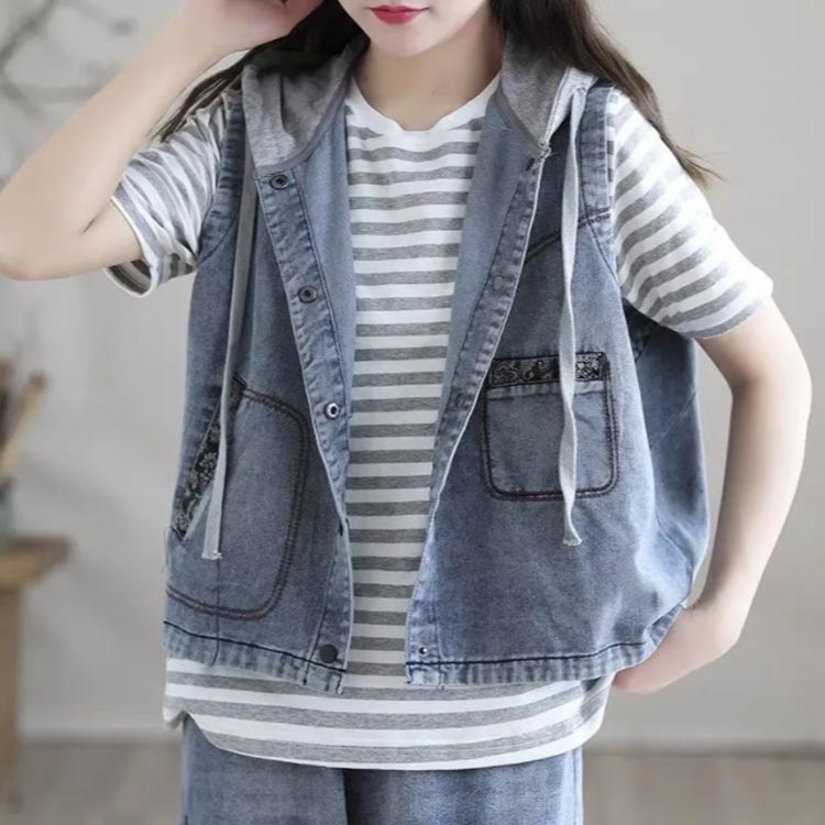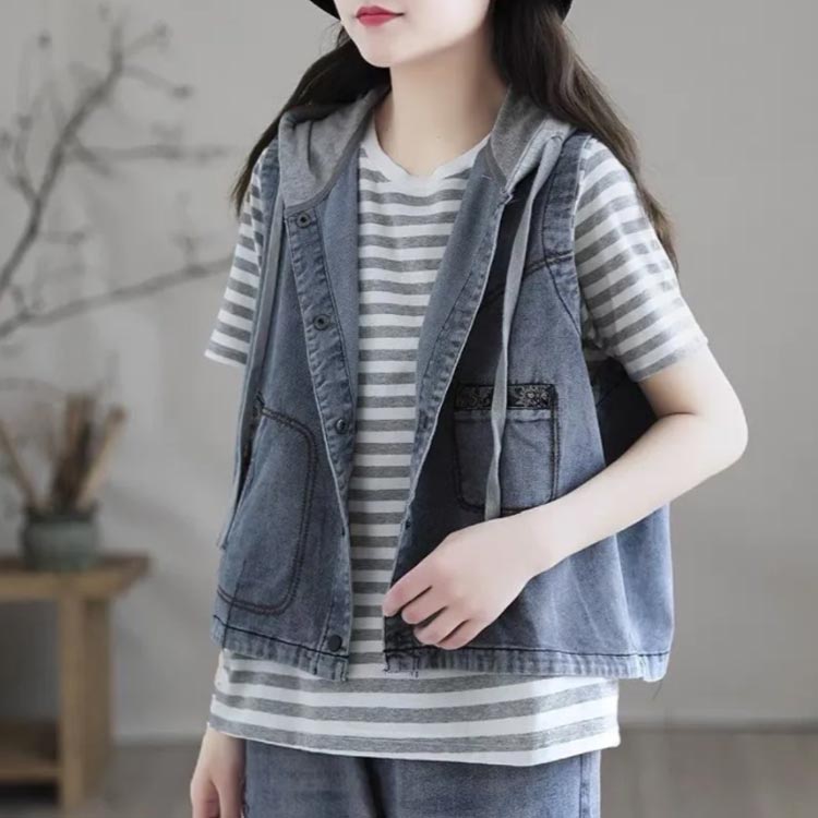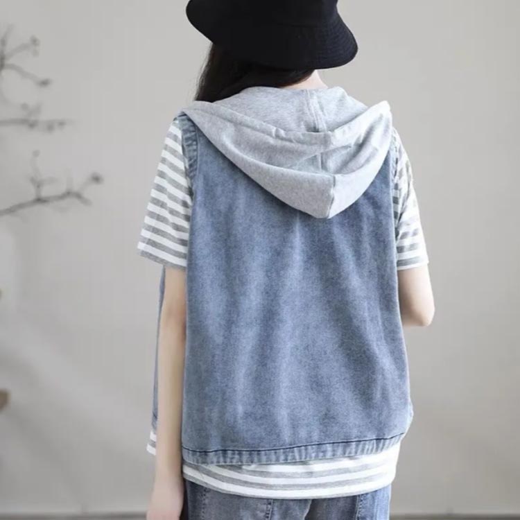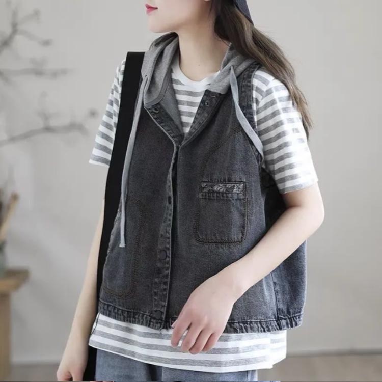 フード付き 春夏 ベスト おしゃれ デニム ベスト レディース 春 ジレ ベスト ベスト 春 デニム 前開き トップス ノースリーブ 羽織り 切り替え ベスト ジージャン 大きいサイズ カジュアル 重ね着 通勤 OL 送料無料