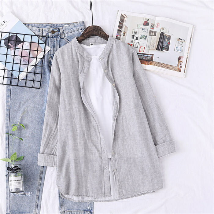 ≪期間限定SALE★2380⇒2180円≫ 即納 ガーゼ シャツ ブラウス レディース 長袖 チュニック ダブルガーゼ 二重ガーゼ 綿100% ガーゼシャツ 柔らかい 大人気 羽織り コットン ライトアウター スタンドカラー トップス チェック柄 プレゼント 母の日 送料無料