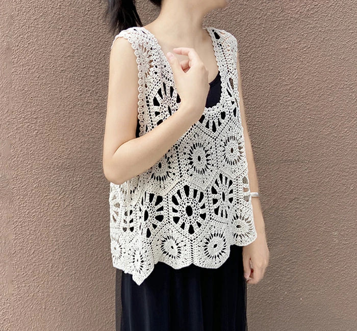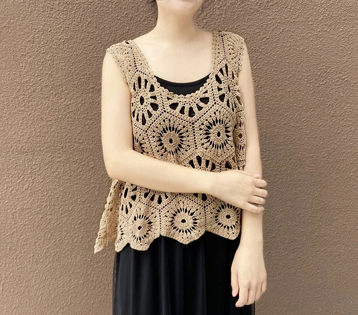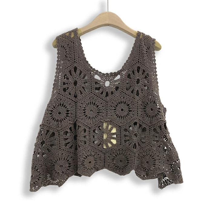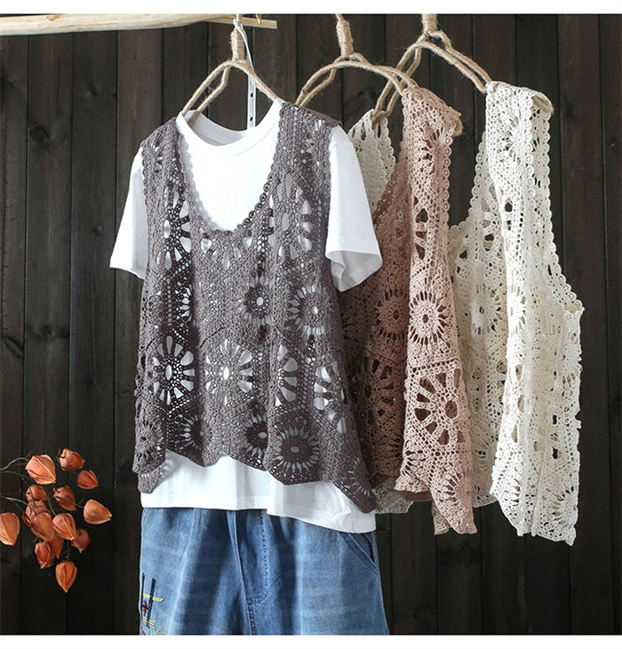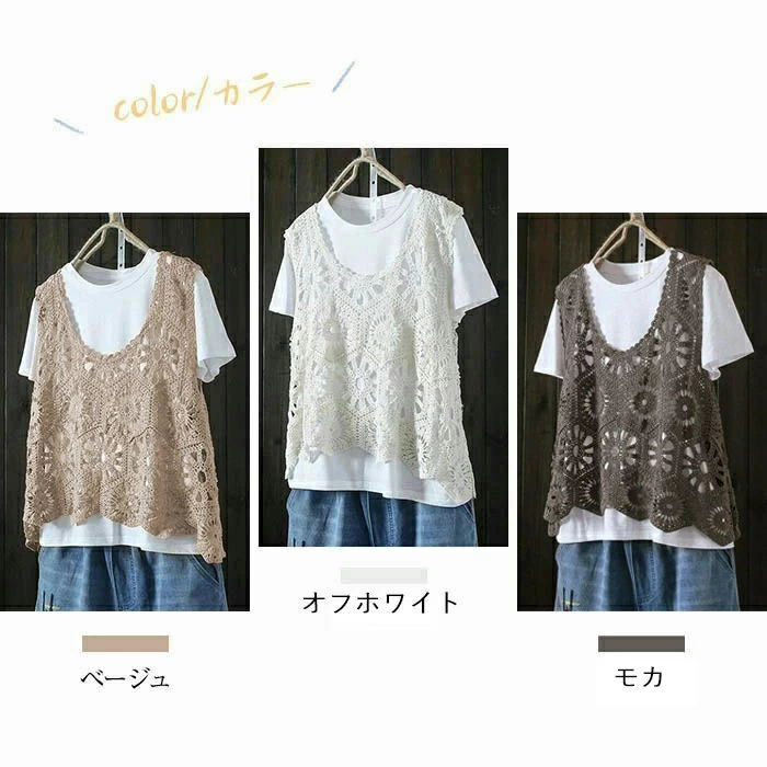 即納 ベスト レディース 春 夏 クロシェ編み トップス 透かし編み プルオーバー Vネック かぎ編み カジュアル 無地 レイヤード ニットベスト トップス きれいめ カジュアル フェミニン 送料無料 無地 大人 かわいい 透け モカ オフホワイト 20代 30代 40代 50代