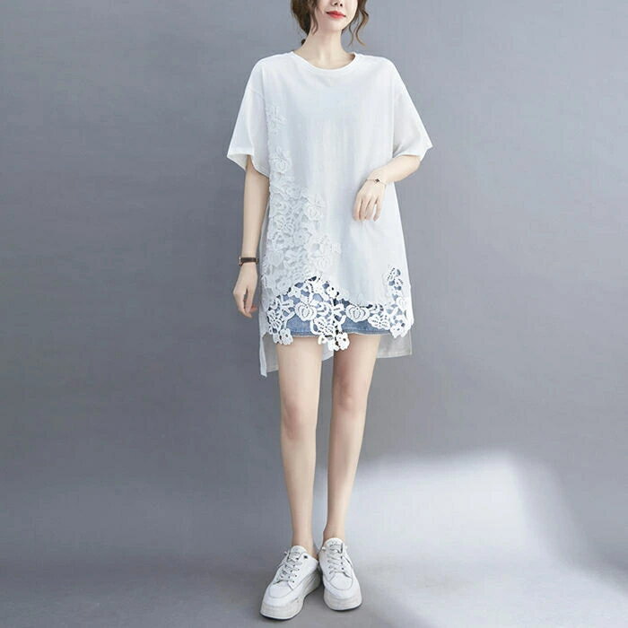 チュニック ブラウス 半袖 レディース 夏 無地 刺繍 シャツブラウス プルオーバー おしゃれ Tシャツ チュニックワンピース ゆったり トップス 大人 可愛い ロング tシャツ 涼しい 通勤 食事会 デート オフィス OL きれいめ ナチュラル チュニック 30代 40代 50代