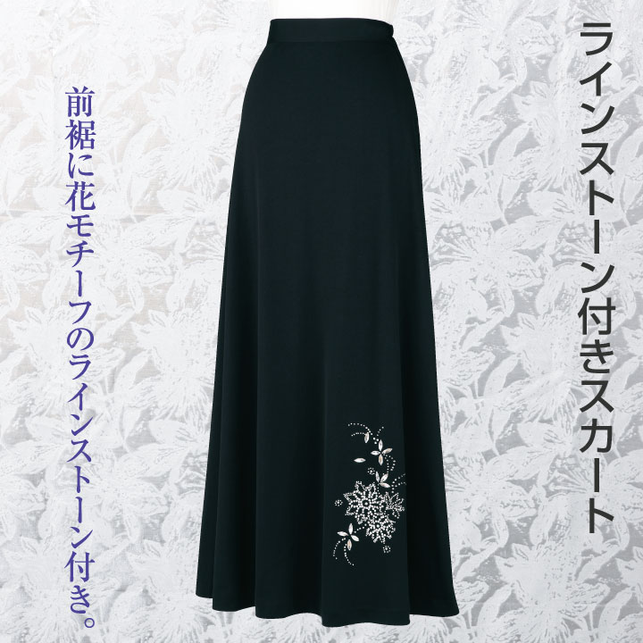 即納★ ラインストーン付スカート [SK517-3079] ロングスカート コーラス 衣装 演奏会 カラオケ衣装 コンサート 黒 発表会 ステージ衣装 ミセス レディース 40代 50代 60代