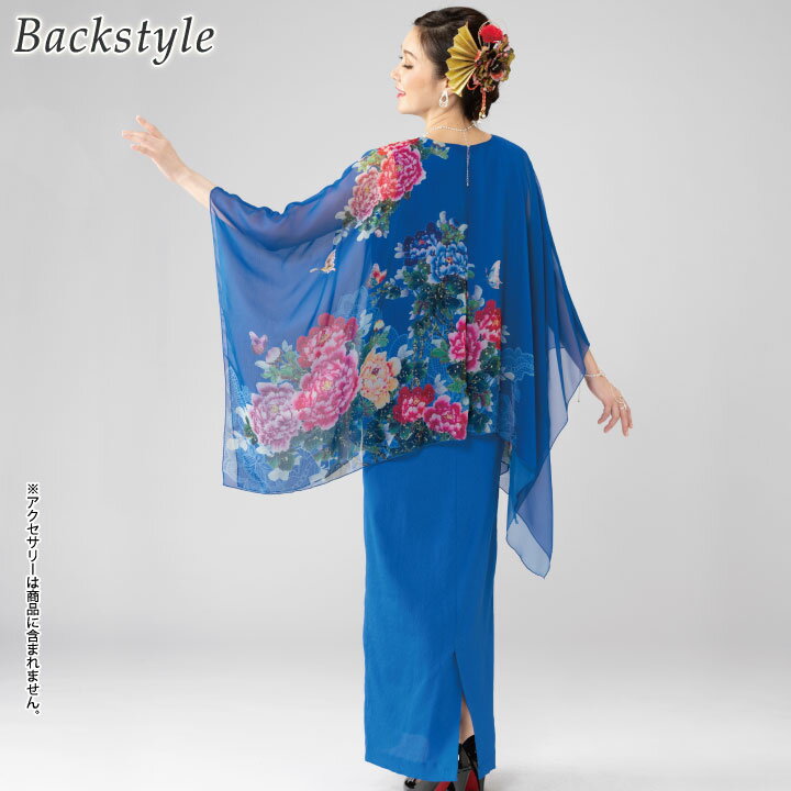 即納★【プライスダウン!】 シフォンプリントケープドレス [OP438-3588] カラードレス カラオケ ステージ衣装 ロングドレス 衣装 ドレス