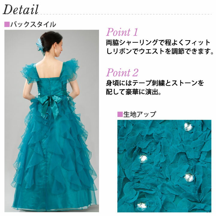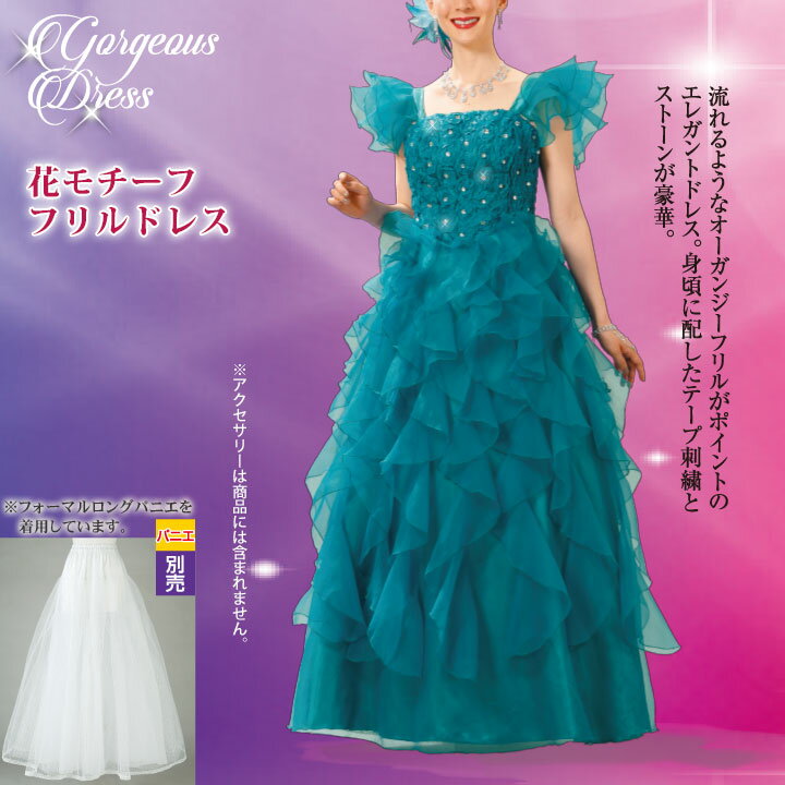即納★ 花モチーフフリルドレス [KS-OP030-3443] ロングドレス カラードレス ステージ グリーン ブルー 豪華 ドレス ロング 衣装