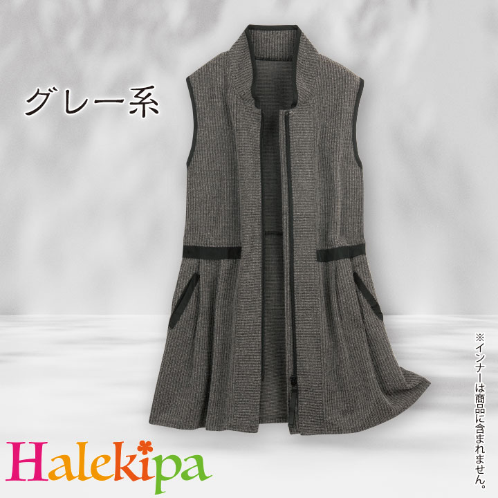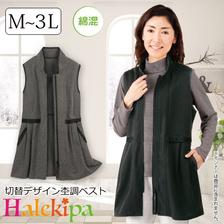 【3/27まで期間限定セール】即納★ 切替デザイン杢調ベスト [VE236-1-80265] レディース ファッション ベスト トップス ファスナー 杢調 黒系 グレー系 お洒落 おしゃれ 切替 ロング丈 ポケット付 羽織り