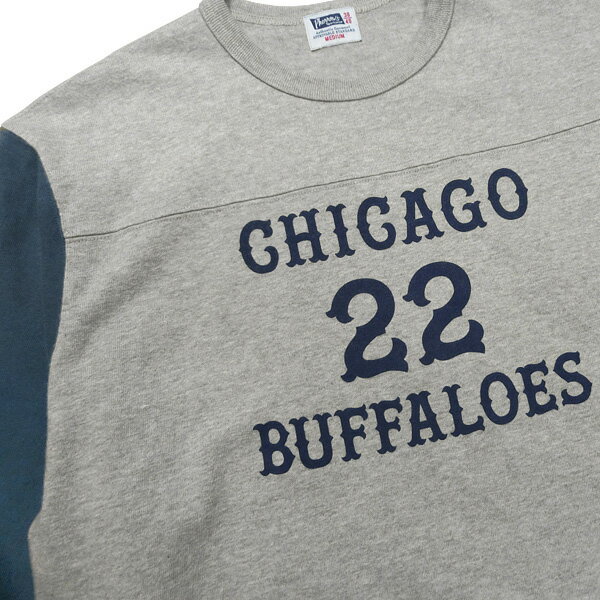 PHERROW'S(フェローズ)袖切り替え長袖フットボールTシャツ【23W-PLFT1】H.グレー×S.ネイビー