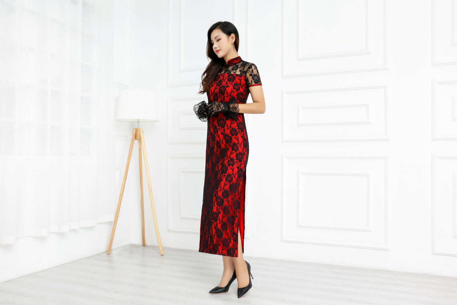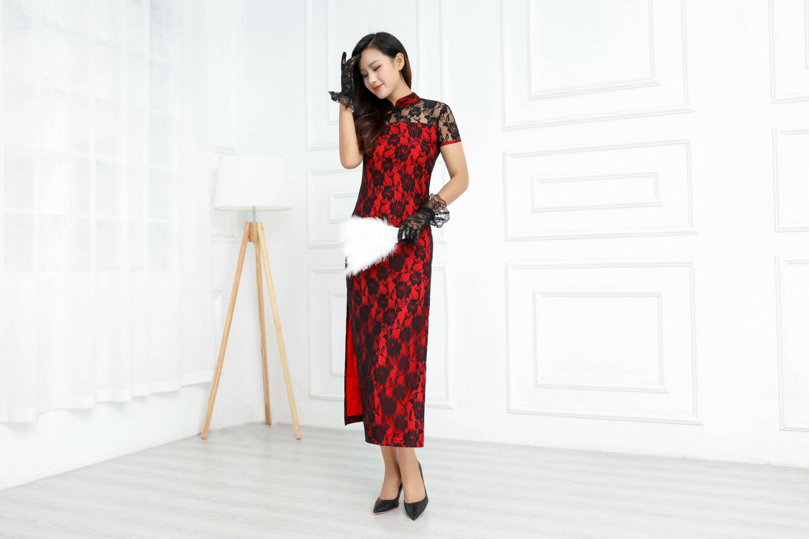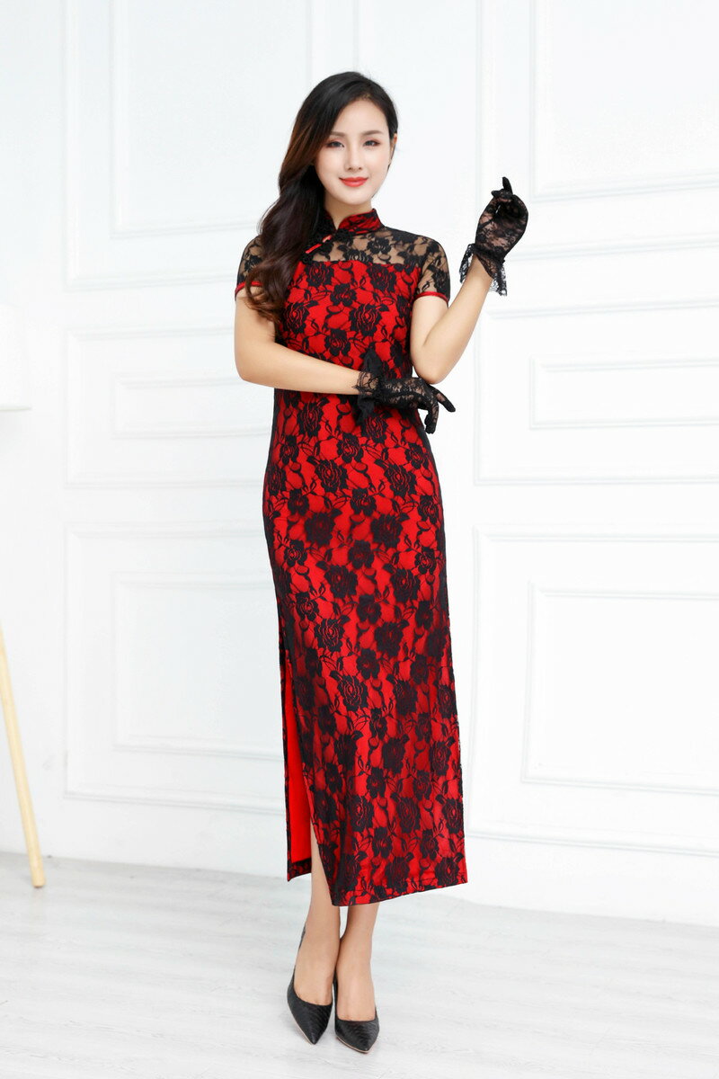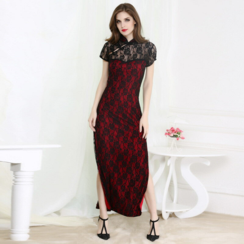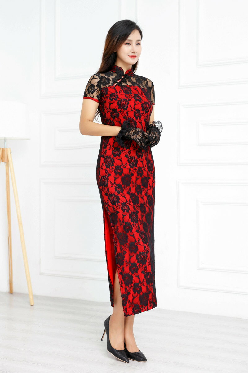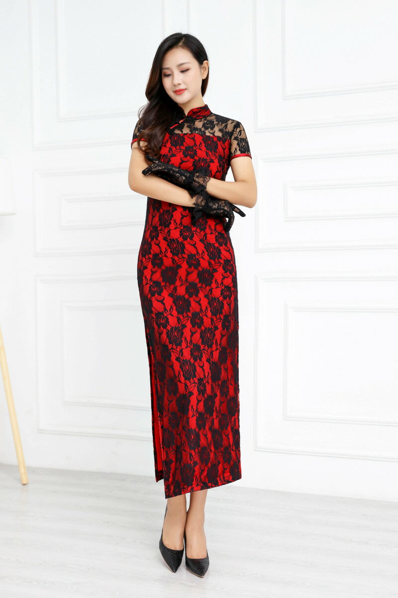 チャイナドレス風半袖 ハイスリット セクシー パーティー 衣装 チャイナドレス コスチューム レディースロングタイプ チャイナワンピース チャイナ服