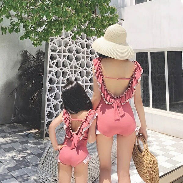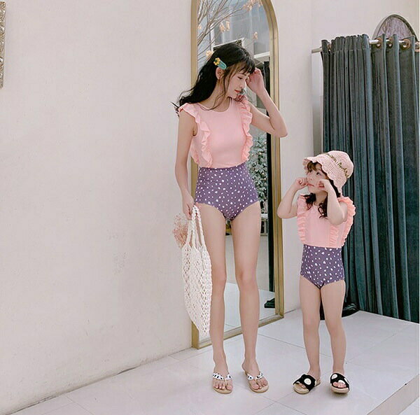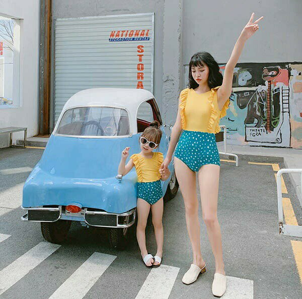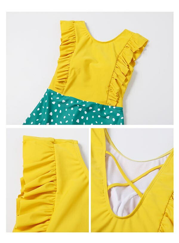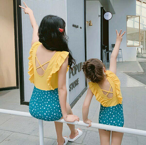 ワンピース水着 親子ペア 水着 大きいサイズ ワイヤーなし パッド有り レディース 女の子 子供 小さいサイズ お揃い バックレス 韓国風 大人可愛い 体型カバー ピンク イエロー パープル グリーン df127x1x1x1