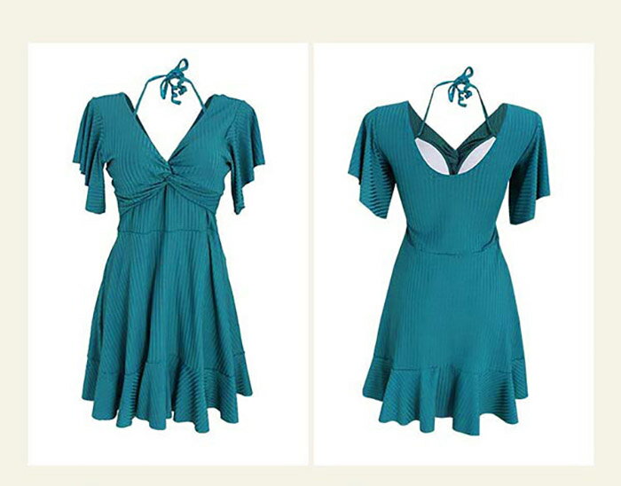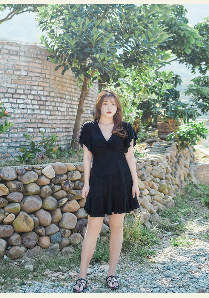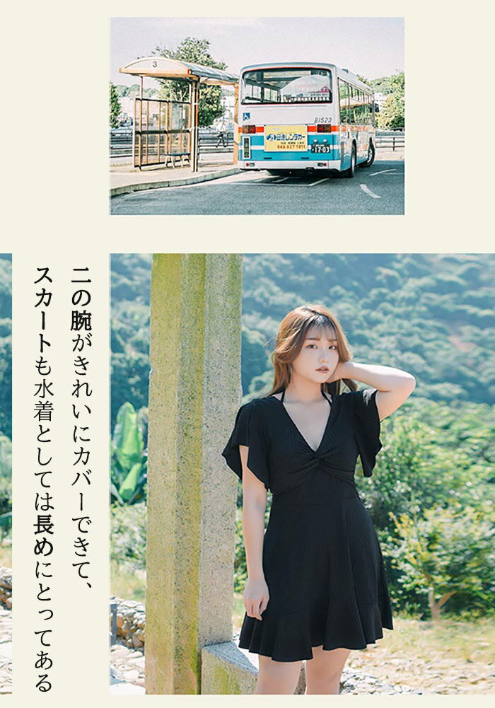 短納期【スマホ防水ケースプレゼント実施中】洋服みたいな 露出控えめ ワンピース水着 大きいサイズ 体型カバー レディース ぽっちゃり 二の腕カバー ワイヤー入り フェミニン かわいい ショートパンツ Vネック ストライプ パッド付 3L 4L 5L 6L 7L df135n1n1f4