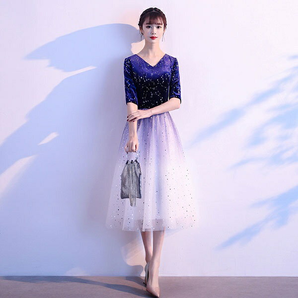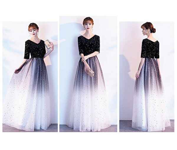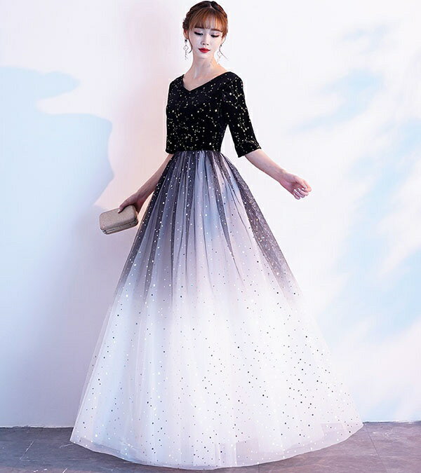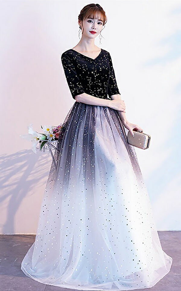 ドレス レディース ロングドレス 演奏会 袖あり 半袖 5分袖 キラキラ グラデーション ブライズメイド ドレス ロング丈 ミモレ丈 大人 ピアノ 発表会 結婚式 母親 ドレス ロング 大きいサイズ 体型カバー ブラック ブルー ワインレッド 20代 30代 40代 da046n1n1y8