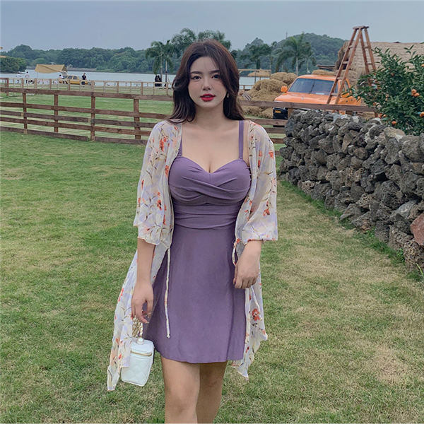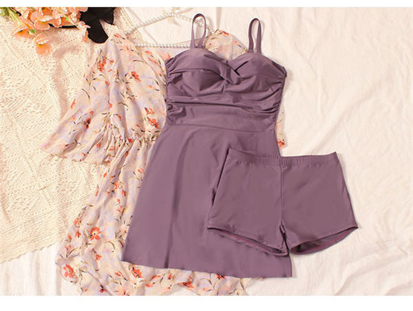 タンキニ 水着 キャミソール ワンピース ショートパンツ ボーイレッグ 3点セット 体型カバー トップス付 レディース 女性 ボタニカル 大きいサイズ ママ水着 紫 プラスサイズ ワイヤー入り 露出控えめ 花柄 9号 11号 13号 15号 17号 19号 ぽっちゃり df559c0c0l9