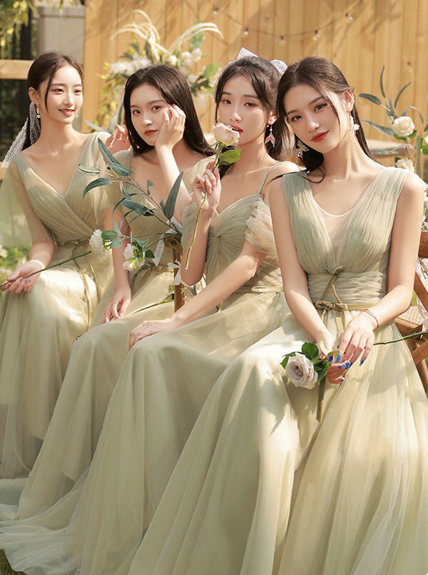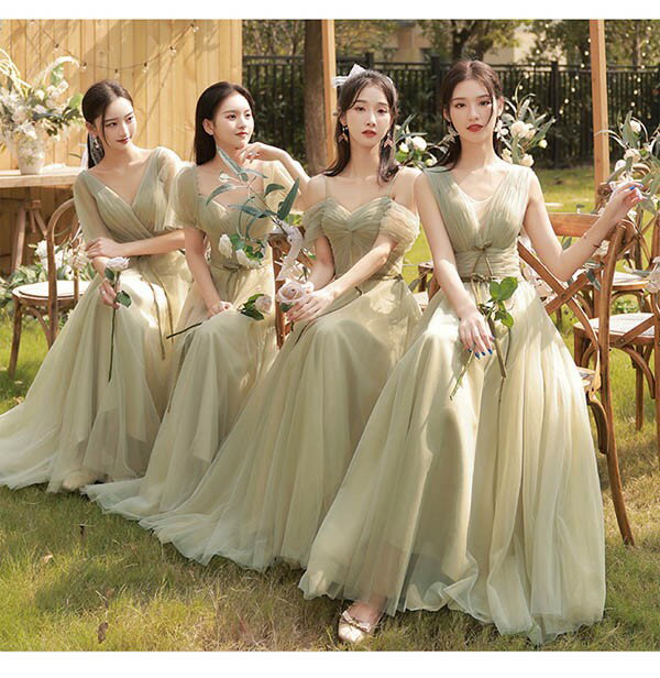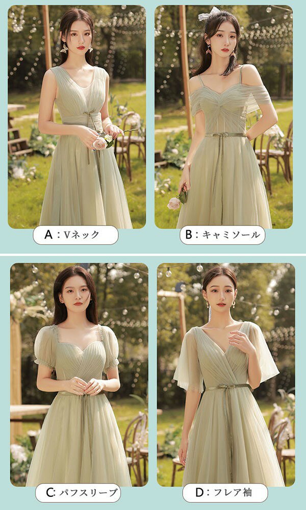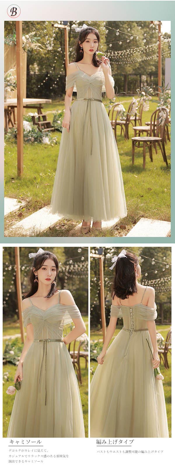 ブライズメイド ドレス ロング丈 グリーン 袖付き 二次会 大きいサイズ 結婚式 体型カバー 半袖 オフショルダー 謝恩会 二次会 卒業式 花嫁 ピアノ 発表会 ドレス 演奏会 20代 30代 bi083zezex1