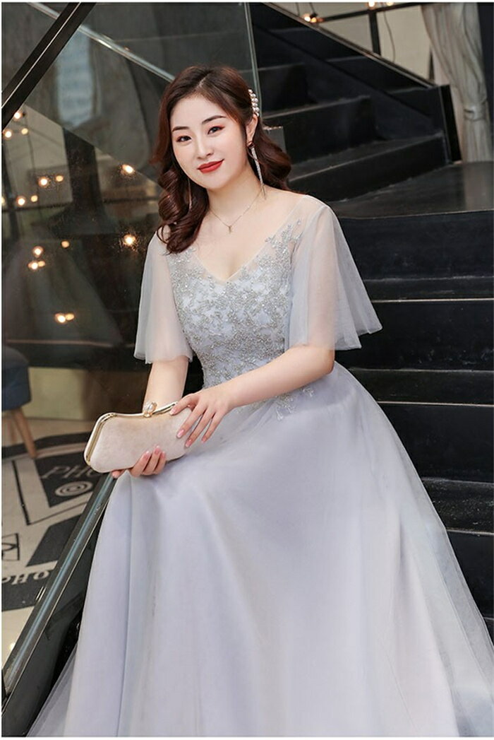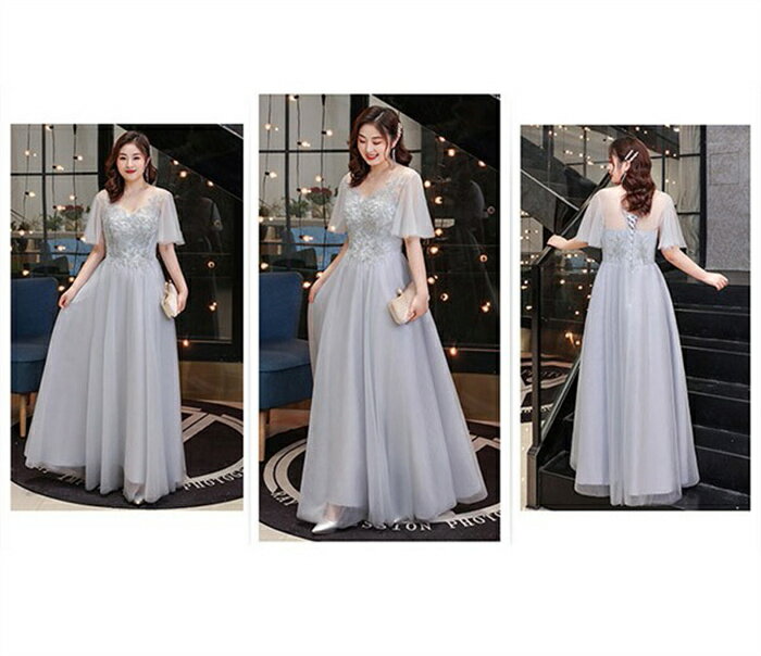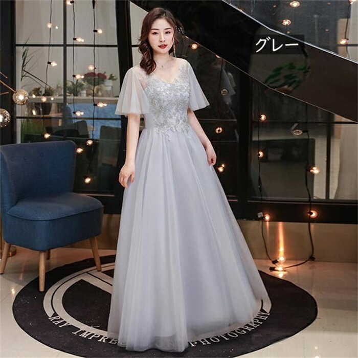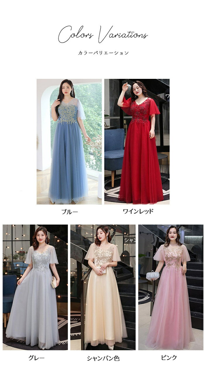 ロングドレス ピアノ 発表会 大人 ぽっちゃり 大きいサイズ 刺? イブニングドレス 演奏会 袖付き ワンピース Aライン ステージドレス 二次会 女子会 成人式 パーティードレス 大人可愛い エレガント フェミニン dd230t2t2x1