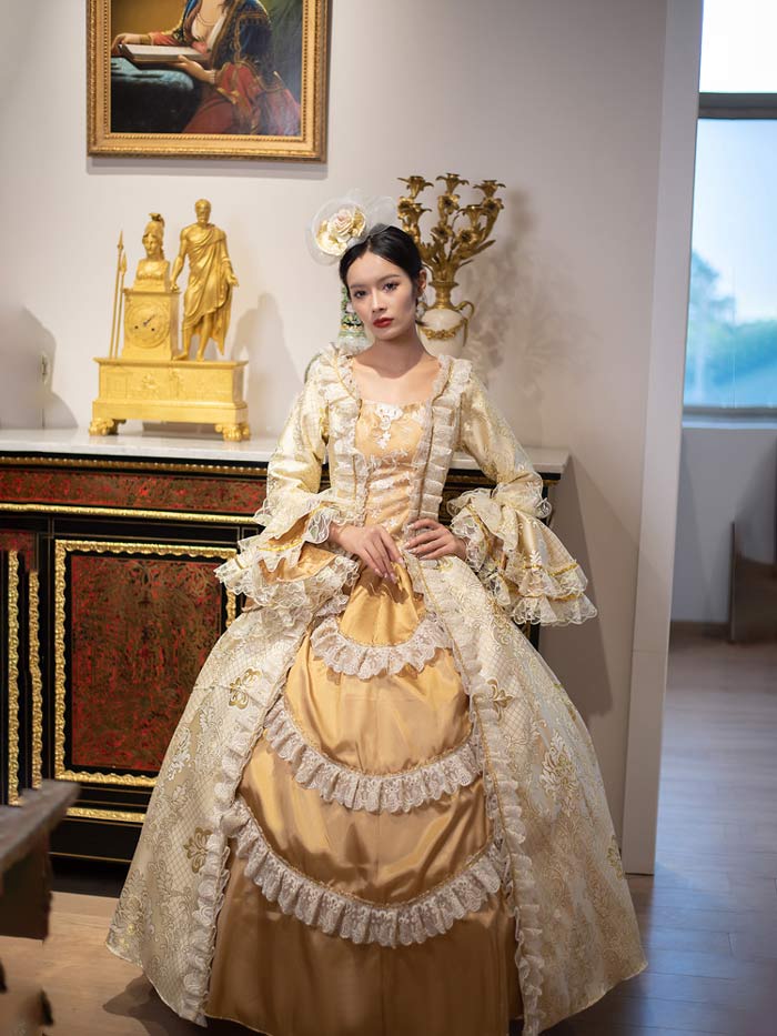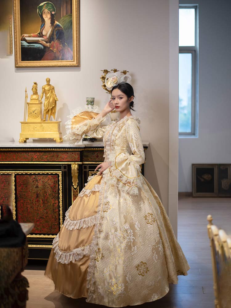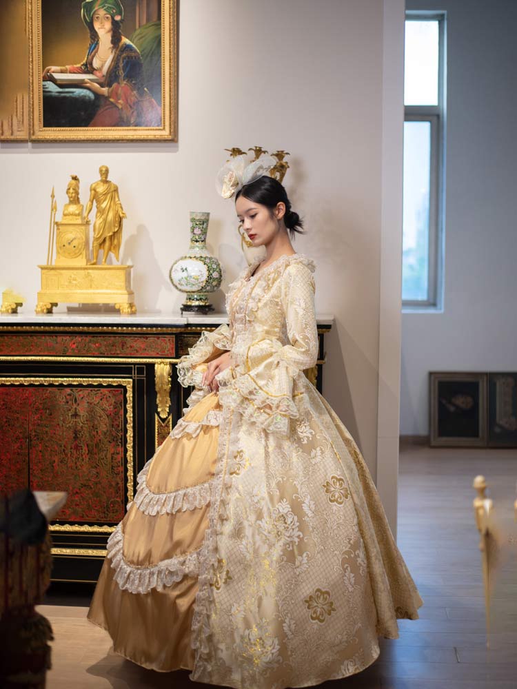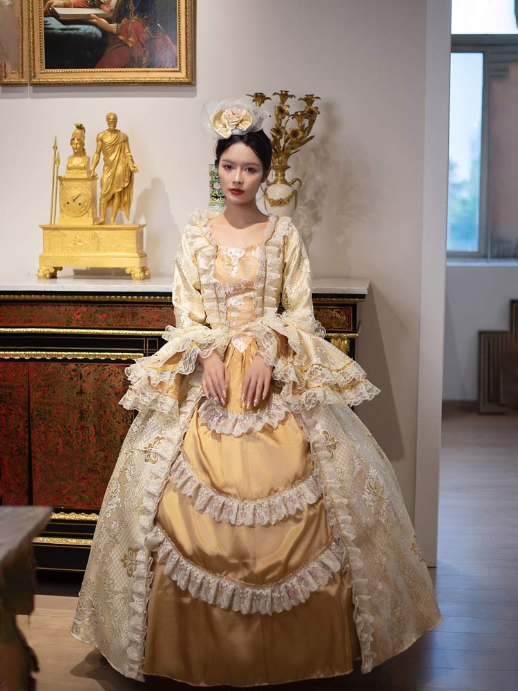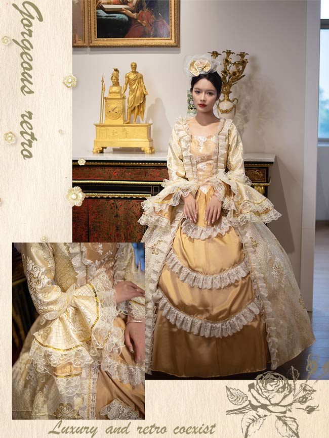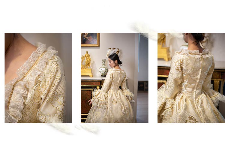 貴族ドレス ステージ衣装 舞台衣装 パーティー オペラ声楽 中世ヨーロッパ 貴族風 お姫様ドレス 宮廷 お嬢様 貴族ドレス ジャガード織 中世ドレス 演奏会用ロングドレス 刺繍 プリンセスライン フリル Aライン d9466c0c0m3