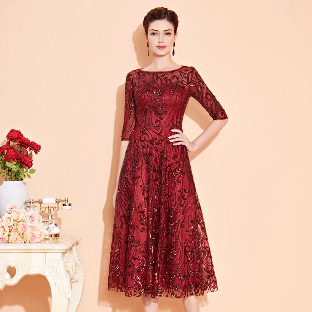 イブニングドレス ミディ丈ドレス カラオケドレス パープル ワインレッド 結婚式・2次会・お呼ばれ・食事会 七分袖 ネイビー パーティードレス 大きいサイズ 5XLミセス 発表会 演奏会用ドレス ピアノ 合唱 披露宴 ad152c0c0m5