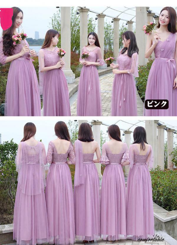ブライズメイドドレス レディース ドレス パーティードレス お揃いドレス ブライズメイド服 花嫁 ウェディング ピンク シャンパン グレー 介添えドレス Aライン ロングドレス プリンセスドレス 結婚式 ad171c0c0x1