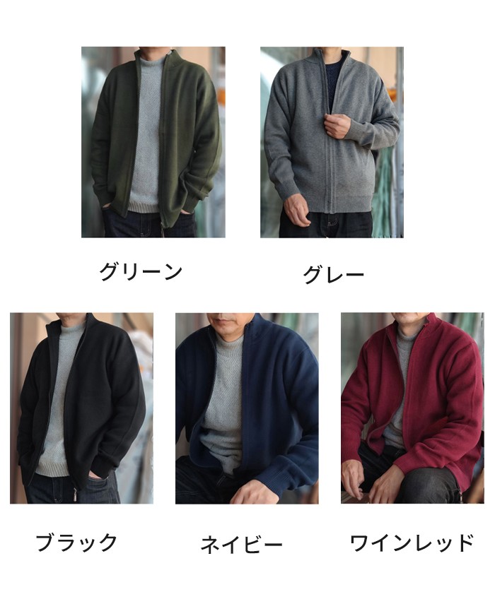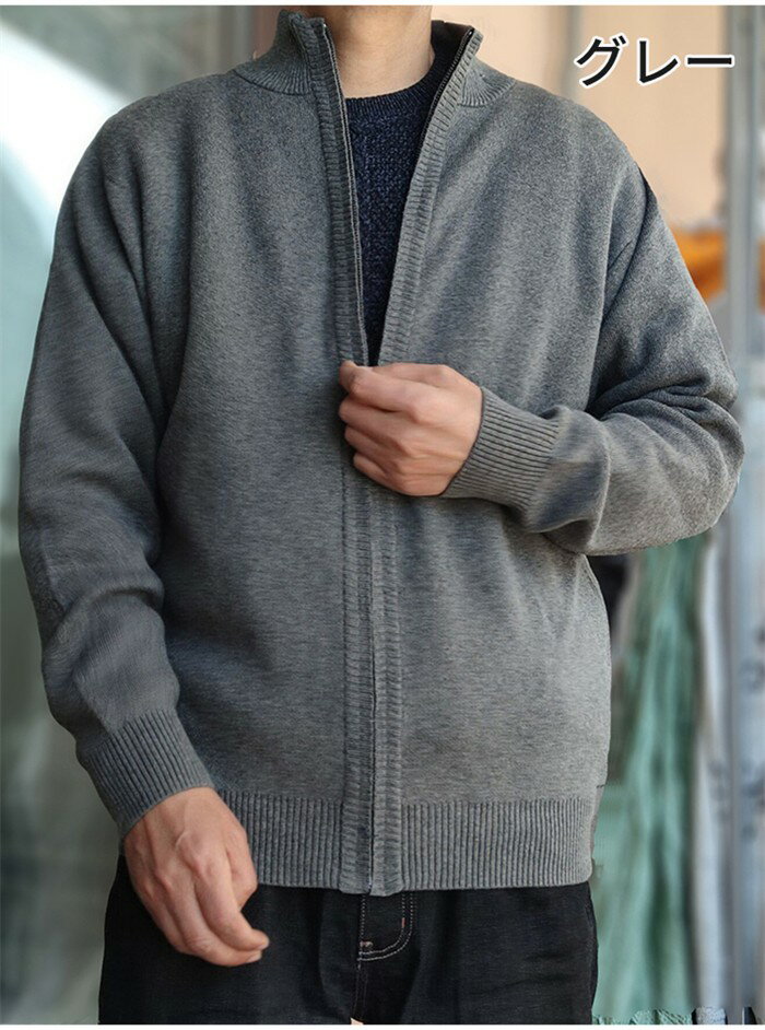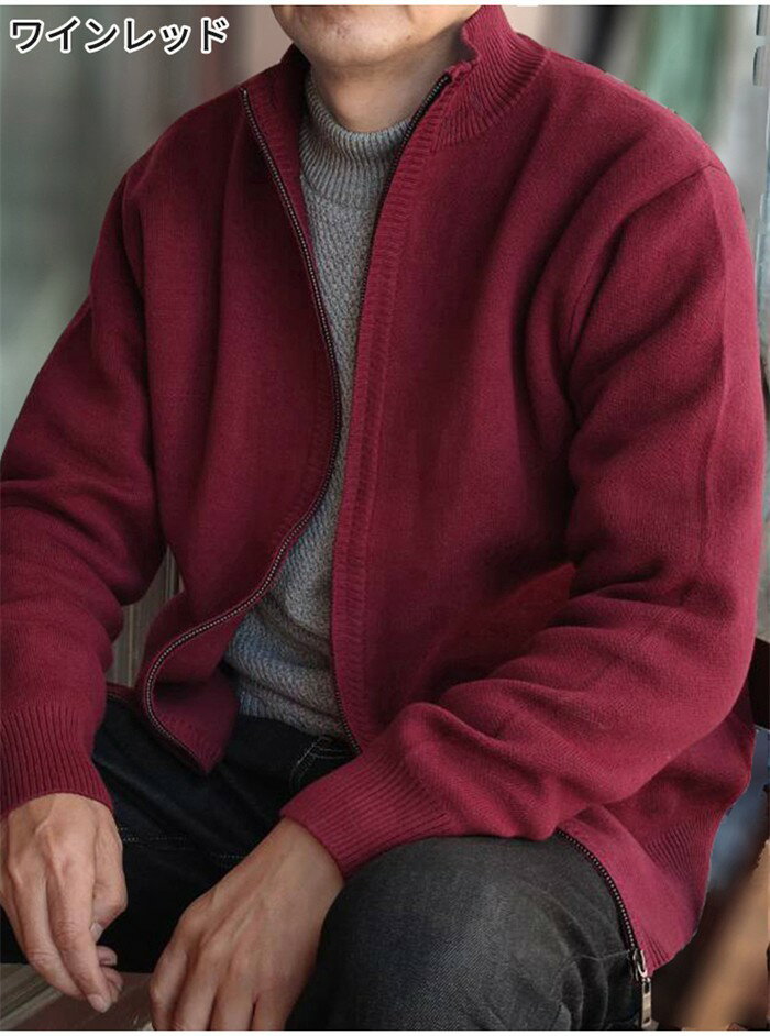 綿 ニット メンズ フルジップ 春 秋 冬 アウター ジャケット 大きいサイズ 立ち襟 セーター ジップニット 30代 50代 40代 カジュアル 無地 厚手 裏起毛 あったか 暖かい ニットセーター ジップアップ メンズセーター ニットジャケット コットン 冬服 春服 d1406d7d73