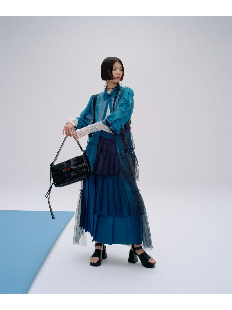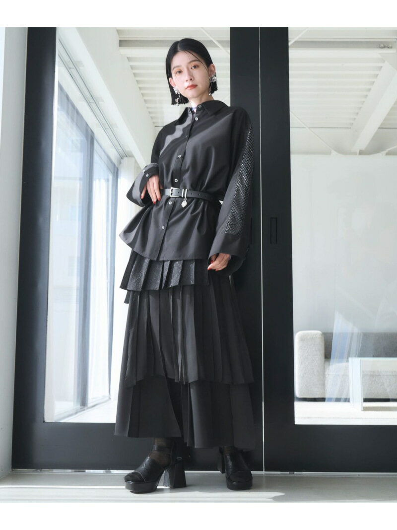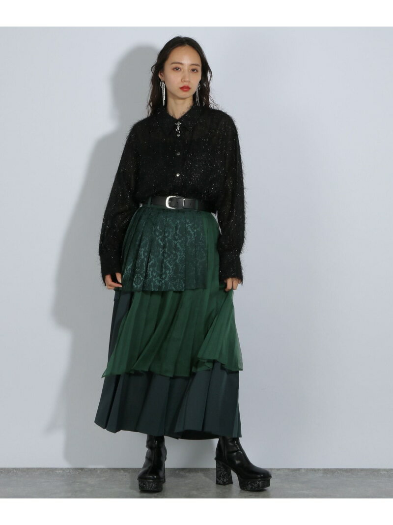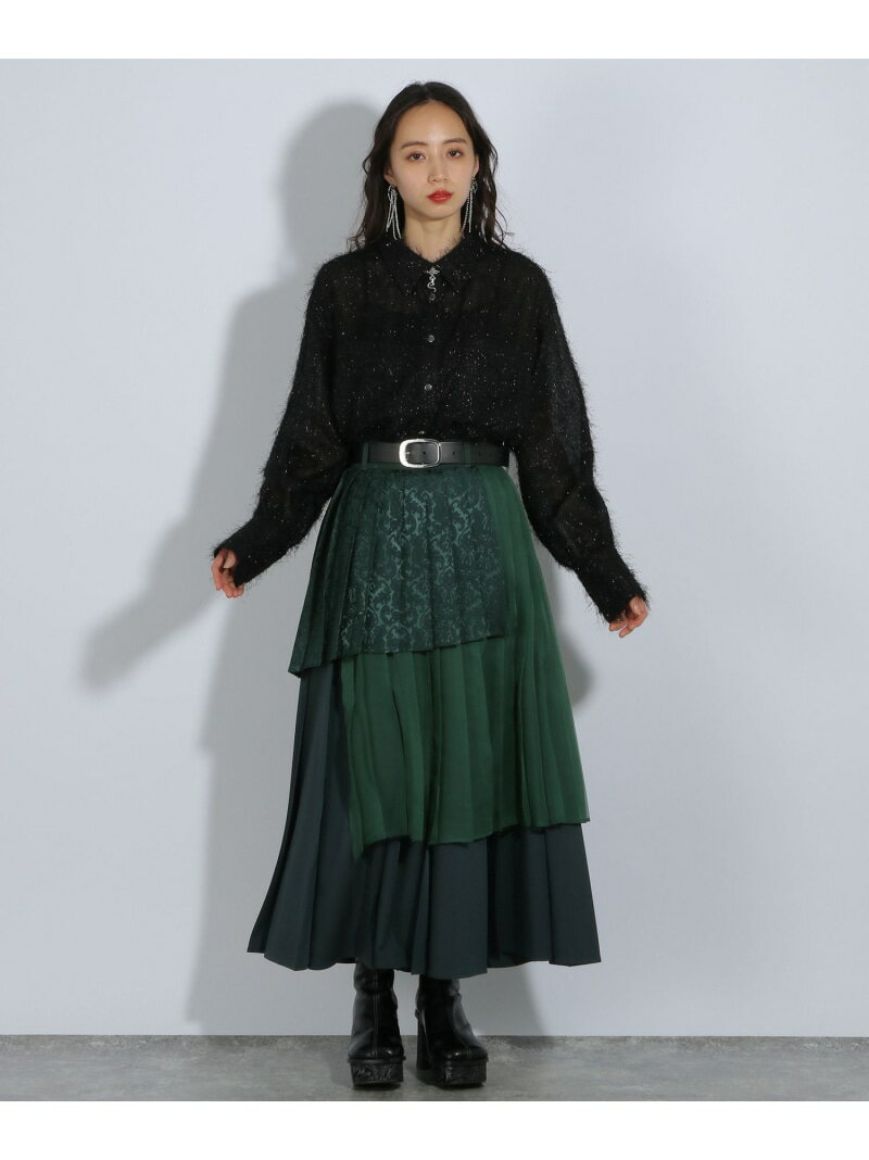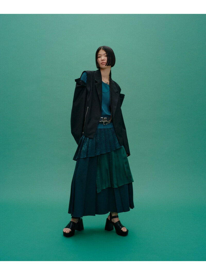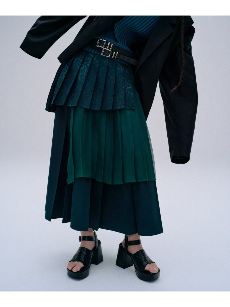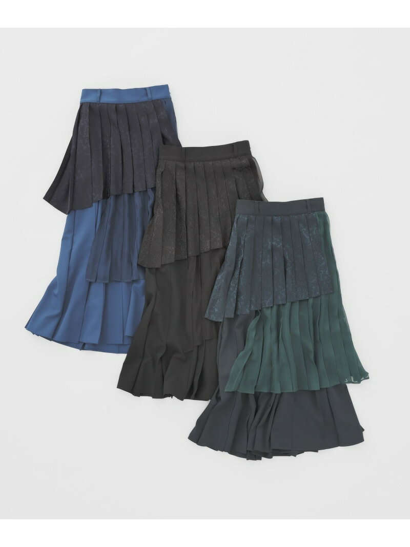 アシメミックスプリーツスカート HARE ハレ スカート ロング・マキシスカート グリーン ブラック グレー ブルー【送料無料】[Rakuten Fashion]