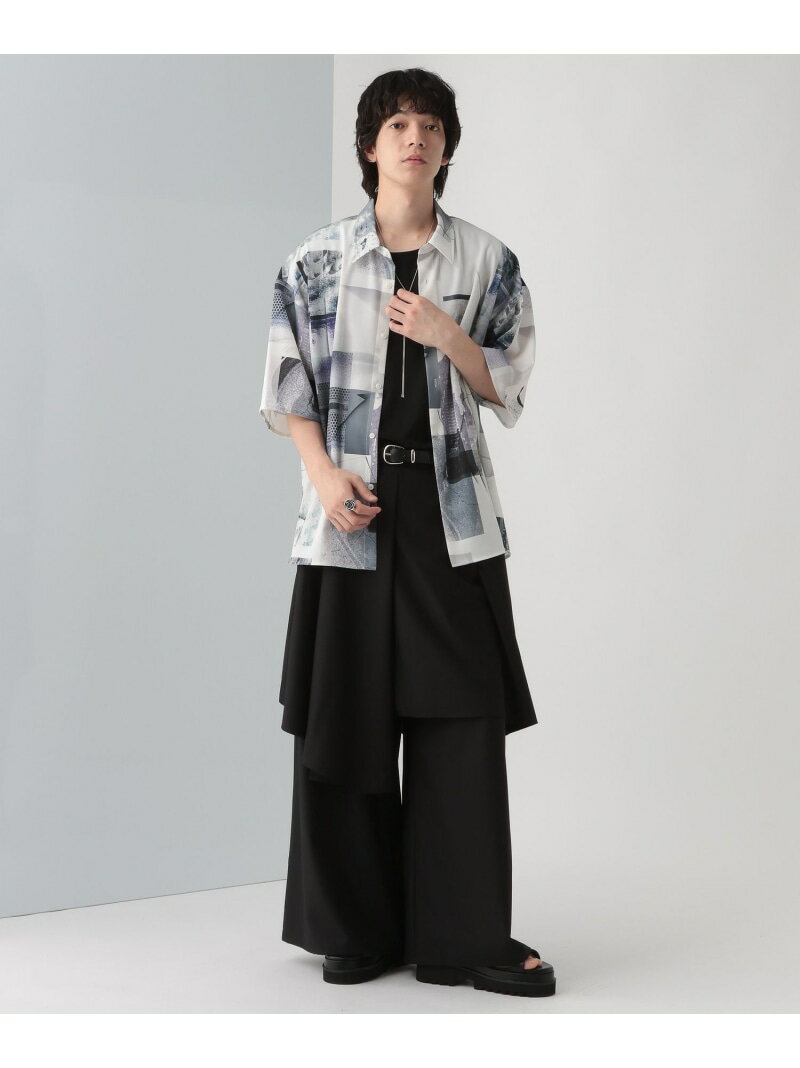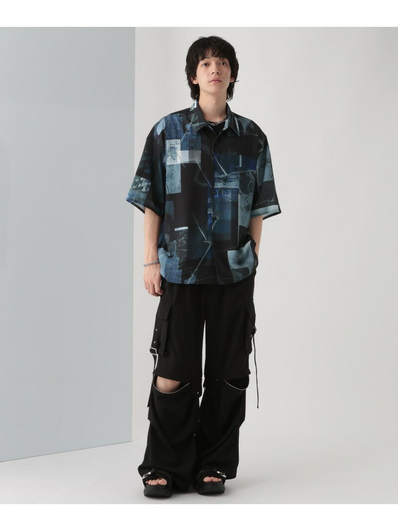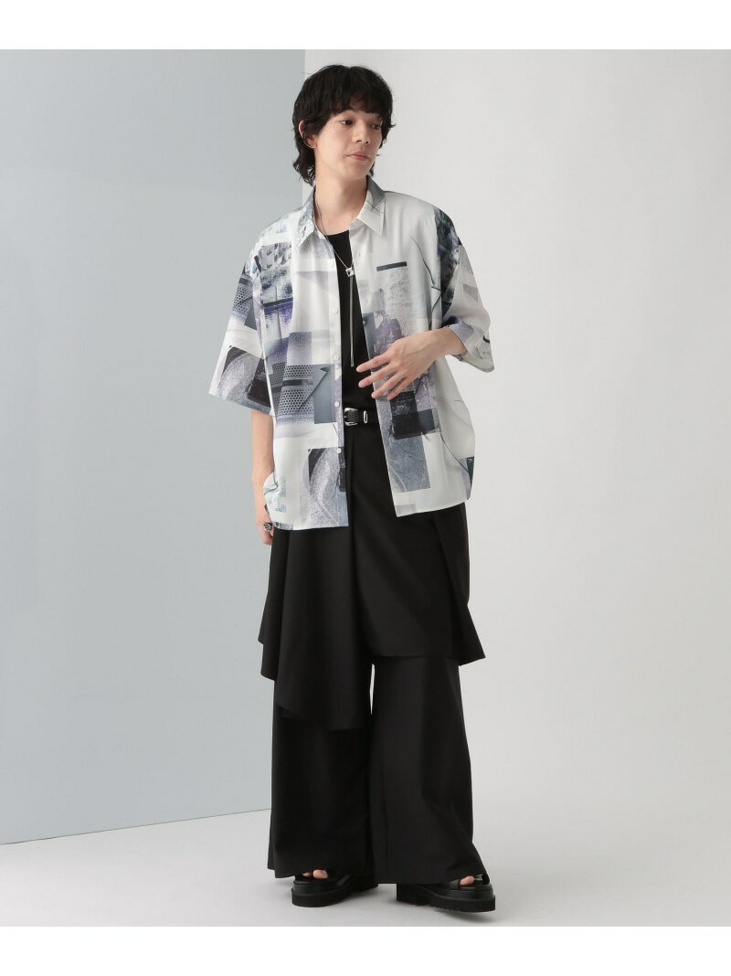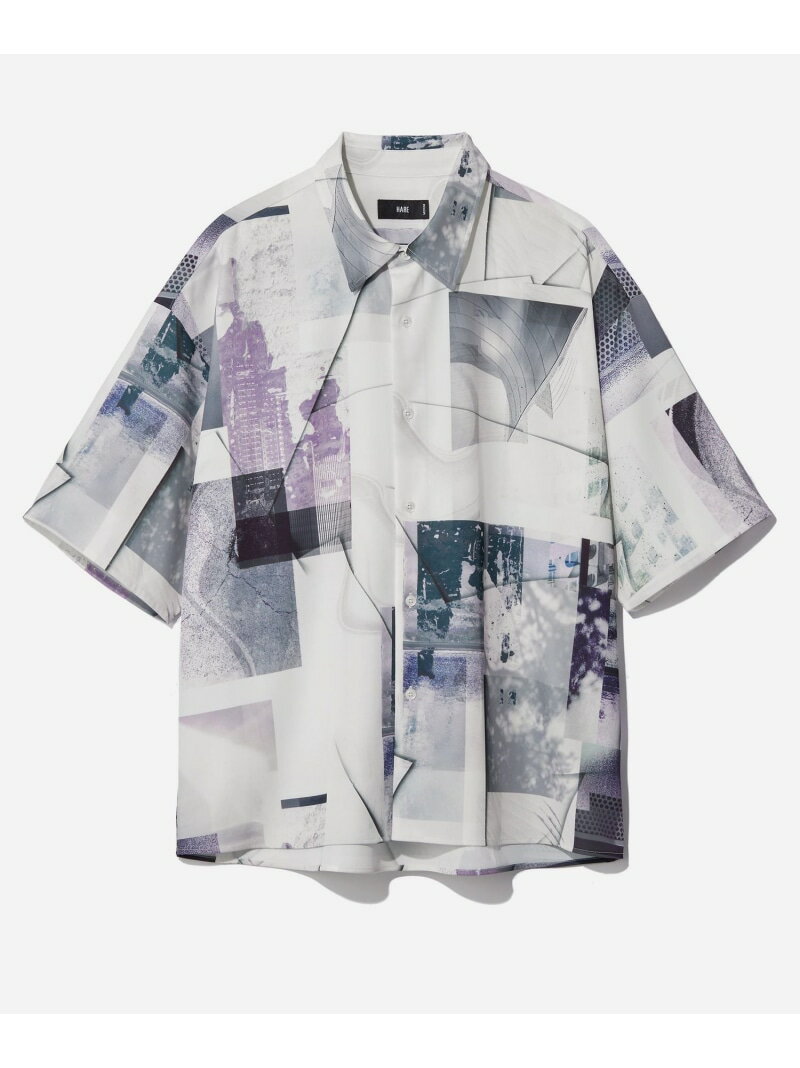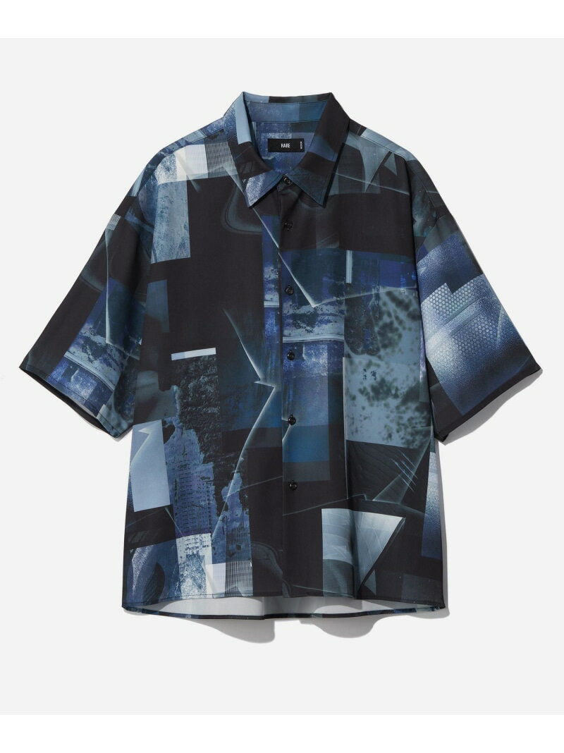 マルチマテリアルパターンシャツSS HARE ハレ トップス シャツ・ブラウス ブラック ホワイト ブルー グリーン【先行予約】*【送料無料】[Rakuten Fashion]