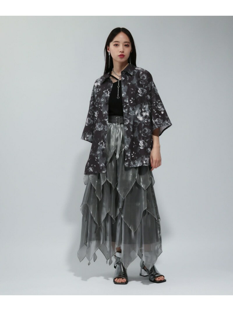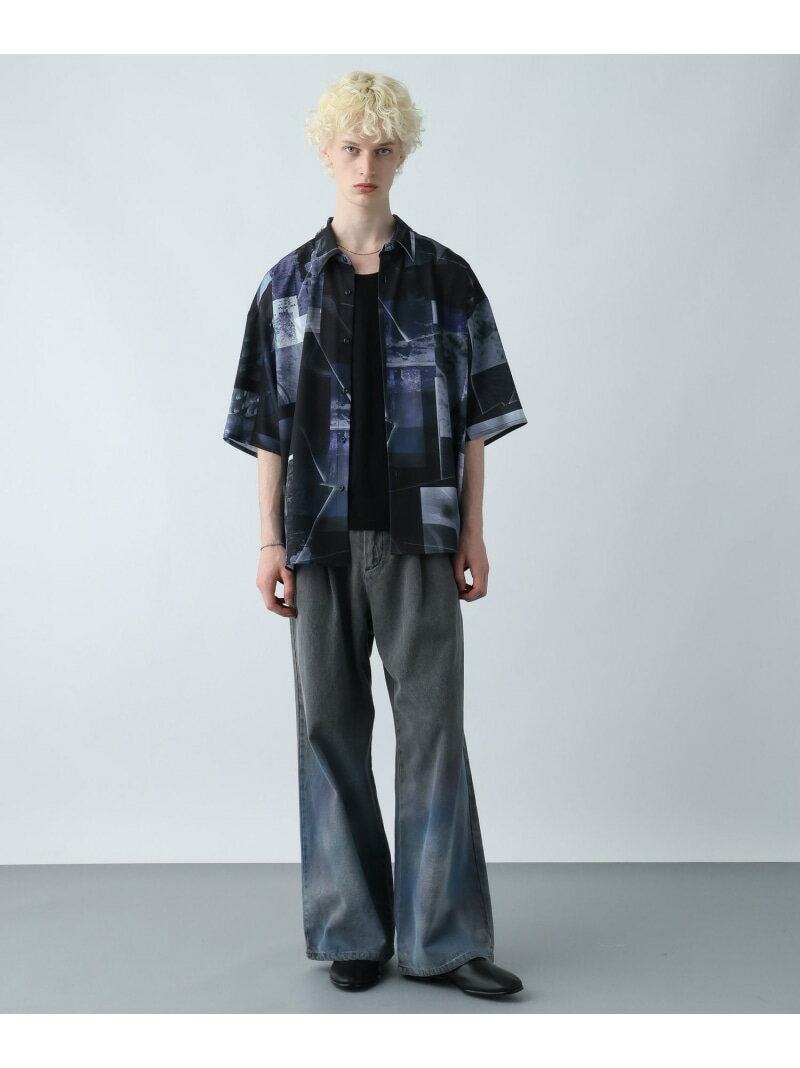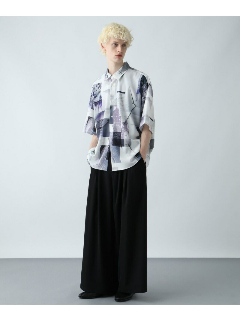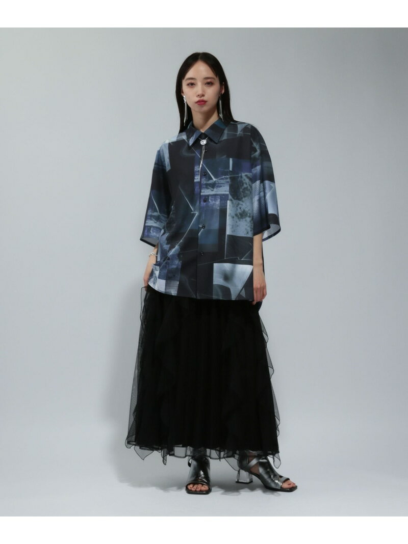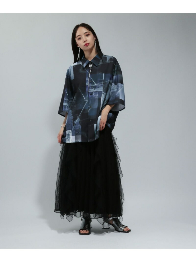 マルチマテリアルパターンシャツSS HARE ハレ トップス シャツ・ブラウス ブラック ホワイト ブルー グリーン【先行予約】*【送料無料】[Rakuten Fashion]