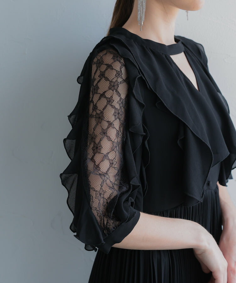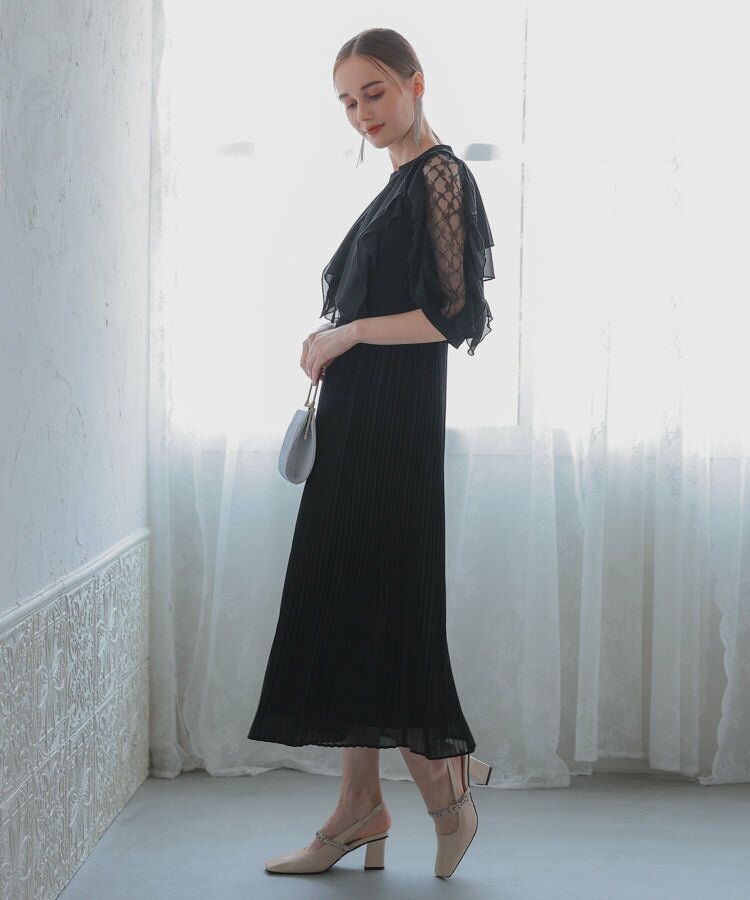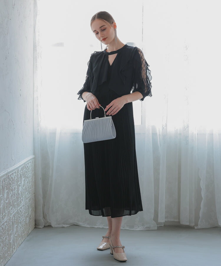 パーティードレス 袖あり ワンピース パーティドレス ミディアム 親族 体型カバー ミモレ丈 ロング丈 お呼ばれ 発表会 結婚式 同窓会 お呼ばれ 披露宴 成人式 二次会 グレージュ ブラック ブルーグレー ドレス ワンピース レディース 20代 30代 ハレモード【2月セール】