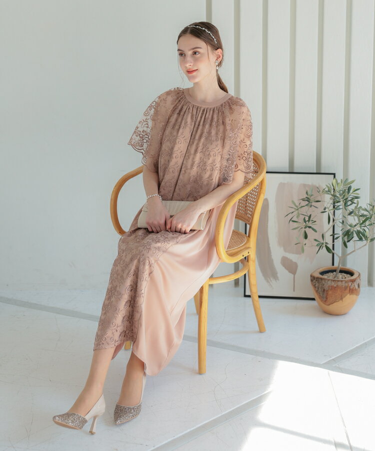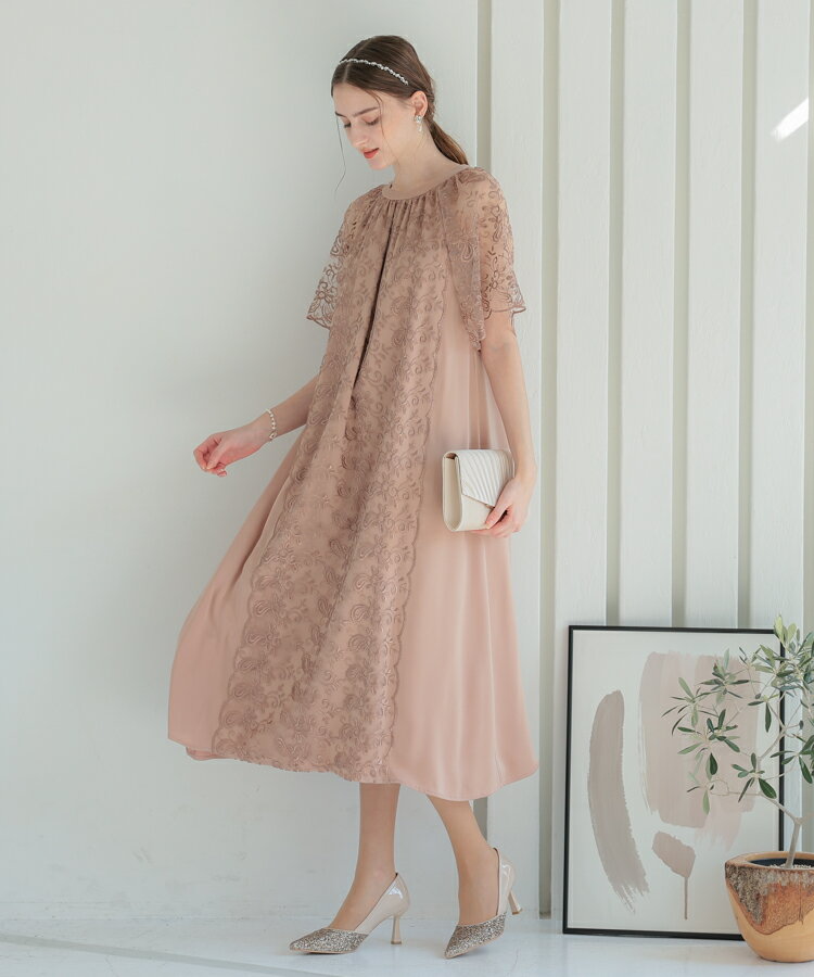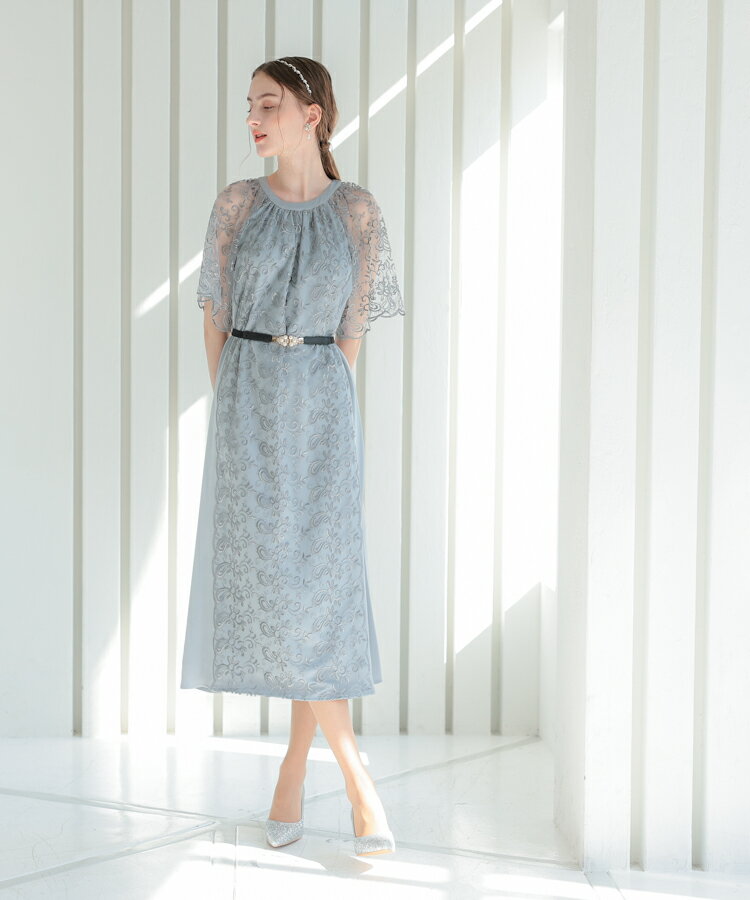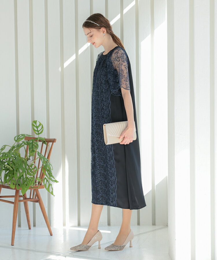 ワンピース ひざ下丈 お見合い 細く 見える パーティー レースレディース ドレス 低身長 お呼ばれ 同窓会 ぽっちゃり 結婚式 セミフォーマル マザーズ 母親 親族 マタニティ 妊婦 フェミニン 二次会 Aライン 刺繍 半袖 袖あり 透け感 花柄 華やか 20代 30代 40代 ハレモード