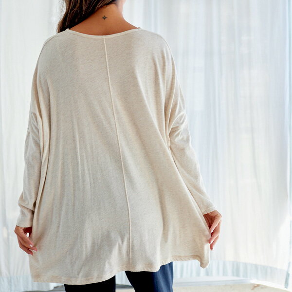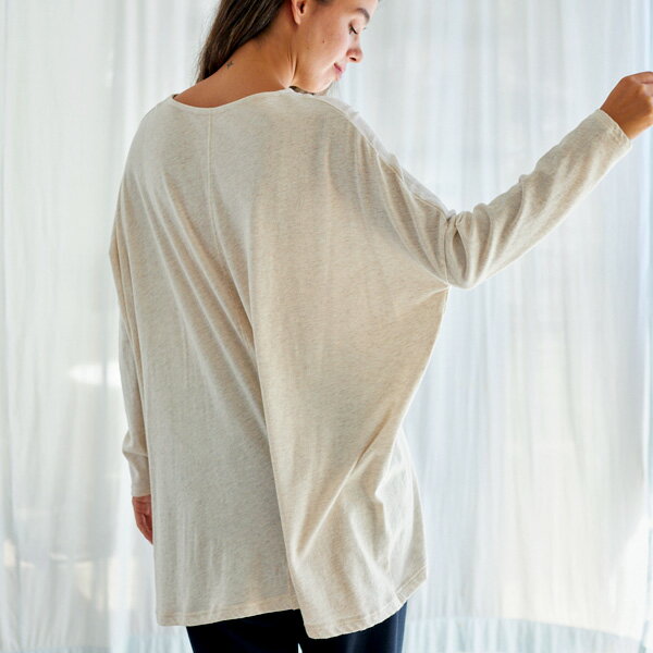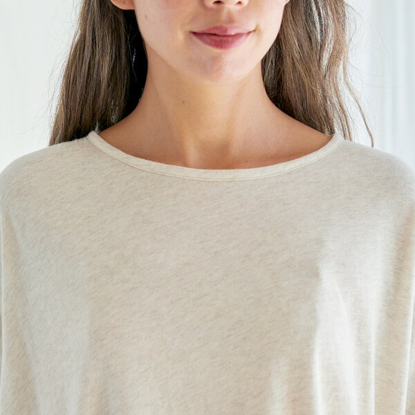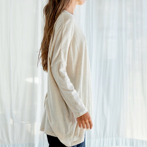 nanadecor オーガニックコットン ファインニットワイドトップス ライトグレー M | ナナデェコール オーガニック コットン レディース トップス チュニック Aライン ゆったり クルー ネック ワイド ファイン ニット リラックス ルームウェア お出かけ 綿 ネグリジェ