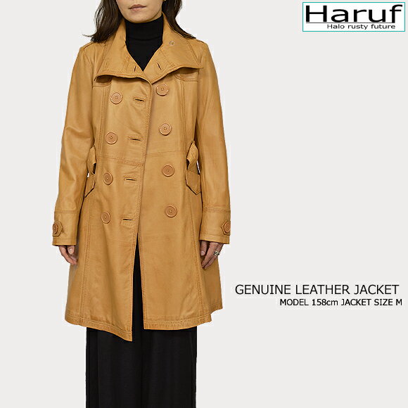 Haruf トレンチコート レザーコート レディース コート 本革 レザージャケット ダブル 革ジャン ラムレザー 革コート レディース アウター シンプル おしゃれ ブランド 秋 冬 VANESSA キャメル 春