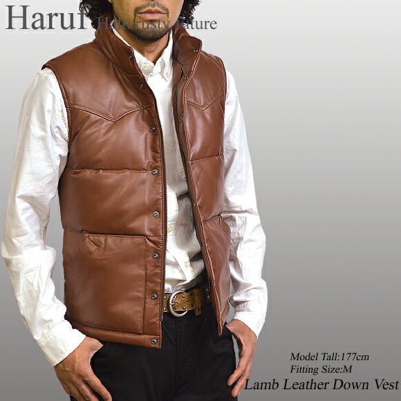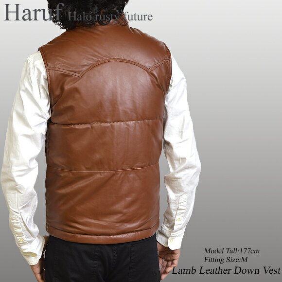 Haruf ハルフ ヨーク ダウンベスト メンズ ブランド レザーベスト 本革ベスト レザーダウンベスト 本革ダウンベスト ジレ レザージャケット 革ジャン ラムレザー シンプル ジレ キャメル US115CAM アウター 秋冬