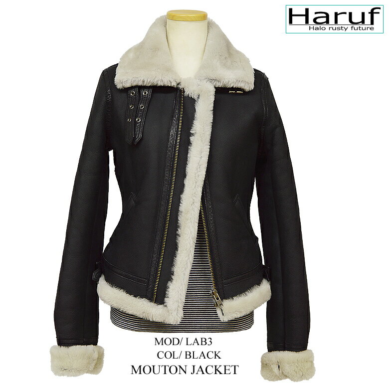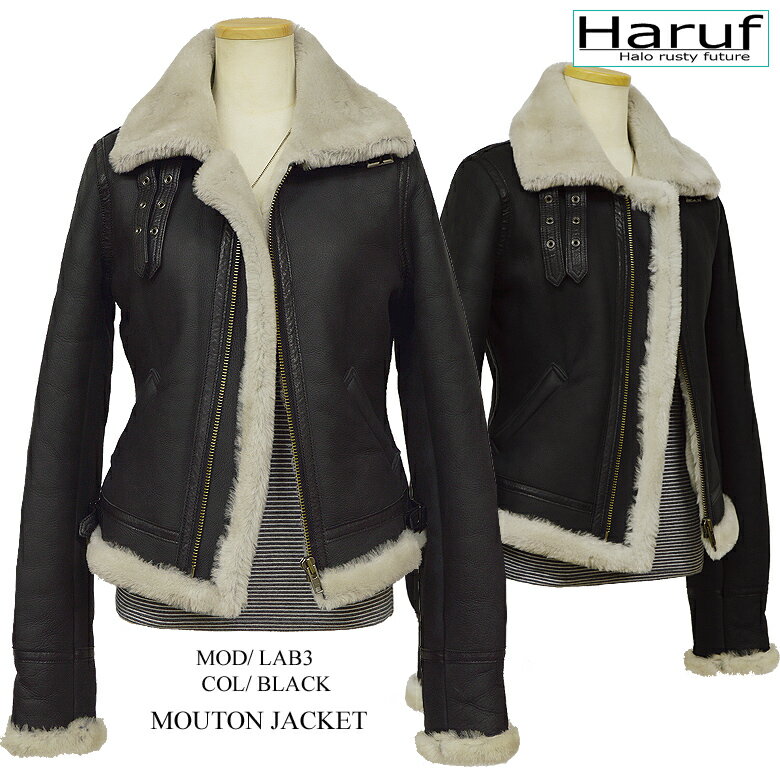 ムートンジャケット ムートンコート 毛皮 本物 ムートン ジャケット ライダースジャケット レザージャケット 革ジャン レディース ブラック 黒 LA B3 アウター 秋冬