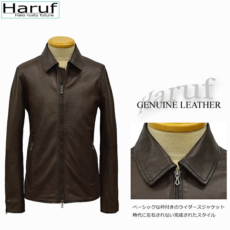 Haruf 革ジャン レザージャケット メンズ 本革 ライダースジャケット シングル ラムレザー レザーブルゾン レザーコート 皮ジャン 羊革 おしゃれ シンプル 秋冬 大きいサイズ ダークブラウン こげ茶 WL03DBR 春