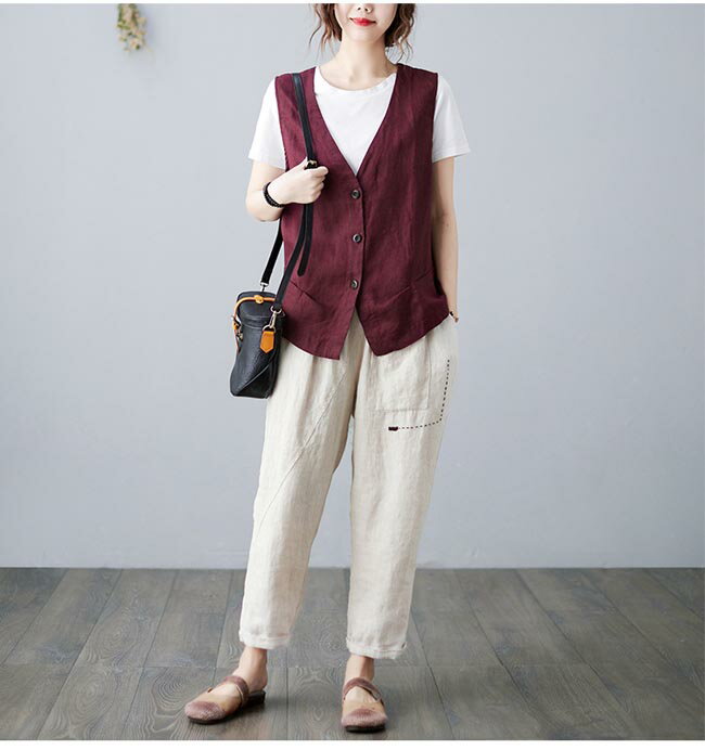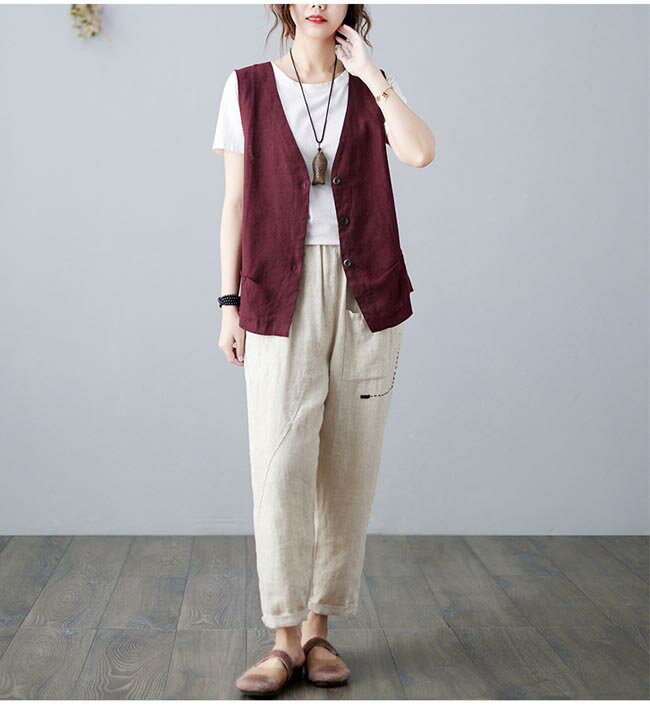 ベスト 薄手 レディース リネンベスト 夏 ジレ 前あき チョッキ ジレベスト 麻 快適 サマーベスト オフィス 前あきベスト ライトアウター ノースリーブ