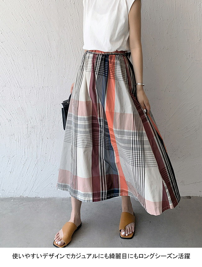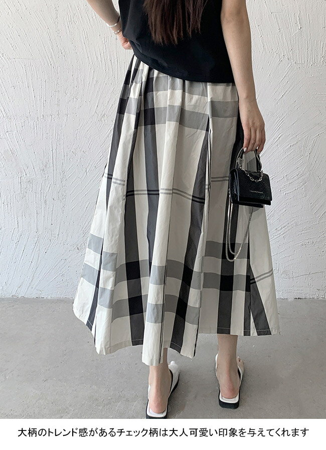 フレアスカート レディース ロングスカート チェック柄 ミモレ丈 Aライン 軽い 光沢 ボトムス カジュアル ウエストゴム 柔らかい 動きやすい ゆったり 体型カバー 着回し 大人女子 美脚 快適 シンプル 出掛け 通勤 通学 春夏秋