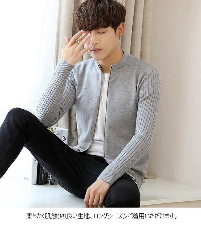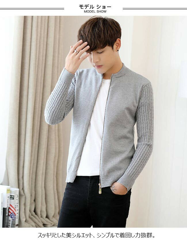 ニットカーディガン メンズ 春 おしゃれ オフィス 前開き ファスナー 長袖 リブ編み 無地 シンプル オシャレ アウター 春 夏 秋 2020年春新作
