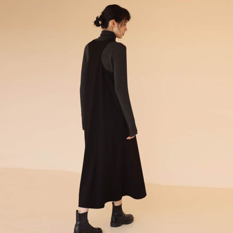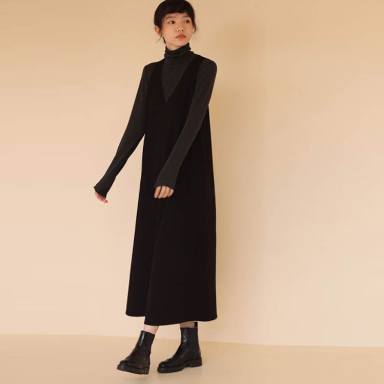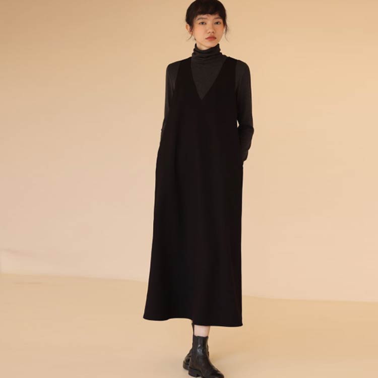 ジャンパースカート Vネック マキシ丈 黒 ポケットあり レディース ノースリーブ ワンピース ジャンスカ 秋 冬 服 フレアワンピース タンクトップ ロングワンピ マキシジャンパースカート 春 フェミニン 韓国ファッション カジュアル
