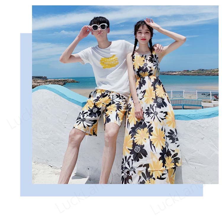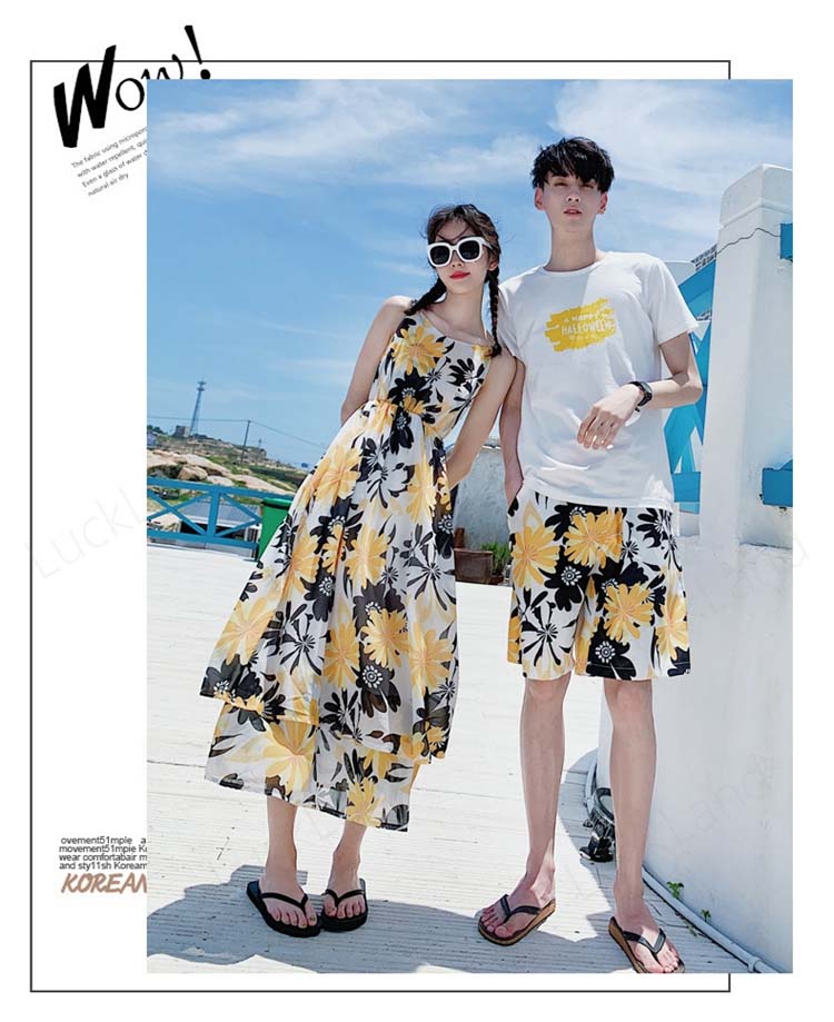 ペアルック カップル 親子 家族 夏 水着 大きいサイズ メンズ レディース 体型カバー ビキニ ワンピース 袖なし ノースリーブ ロング丈 サーフパンツ 花柄 総柄 お揃い お揃いコーデ 夫婦 恋人 海 ビーチ 旅行 ペア 記念日 カップルお揃い
