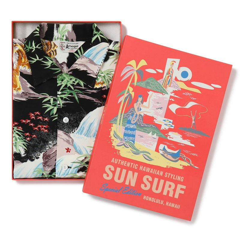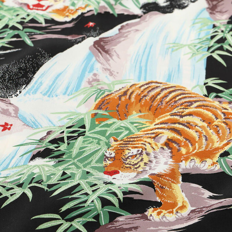SUNSURF サンサーフ アロハシャツ 笹虎 SPECIAL EDITION “SASA TORA” SS39478 メンズ アロハ ハワイアンシャツ シャツ 半袖 レーヨン 総柄 虎 タイガー ハワイアン 半袖シャツ 黒