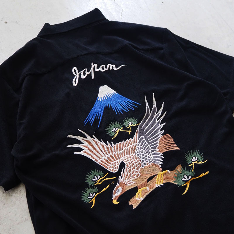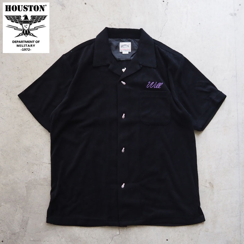 HOUSTON ヒューストン ボウリングシャツ シャツ メンズ パイル ボーリングシャツ 41240 半袖 半袖シャツ ボウリング 鷹 黒 刺繍 アメカジ ミリタリー