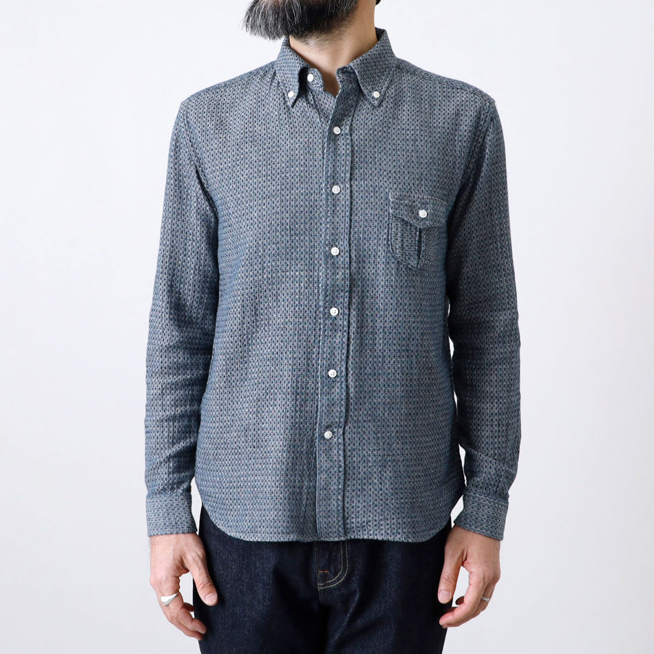 graphzero グラフゼロ GZ-SDBDL インディゴセルビッチジャガードシャツ シャツ ボタンダウンシャツ メンズ トップス 長袖 インディゴ 児島 日本製 アメカジ