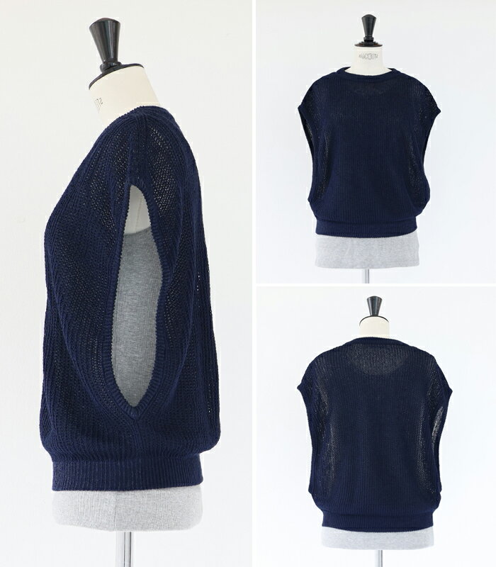 FACTORY 和紙×ペルー綿片畔サマーニットベスト レディース 春夏秋 ネイビー 松煙 K-03 ファクトリー【送料無料】
