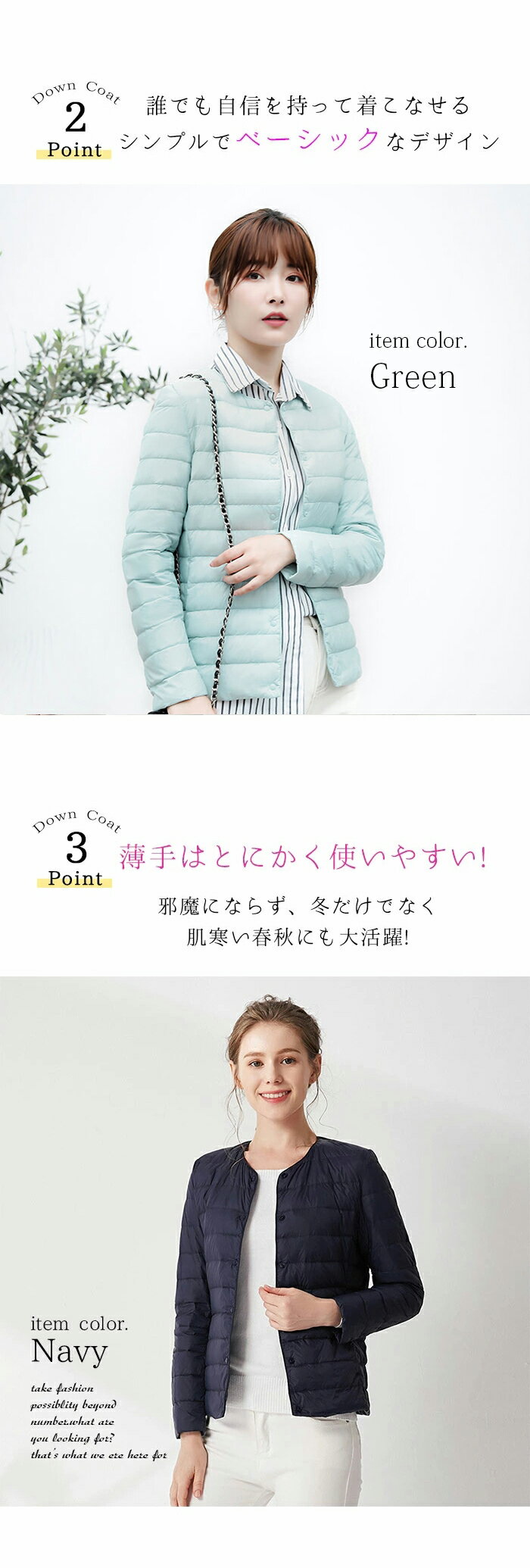2way ダウンジャケット レディース ライトダウン ダウンコート 軽量 V首 丸首 インナーダウンジャケット 軽量ダウン 防寒着 長袖 ナイロン ウルトラライト 無地 薄手 軽量 暖かい 防風 防寒 秋 冬 春 ダウン 通勤 通学 オフィス OL Uネック/Vネック
