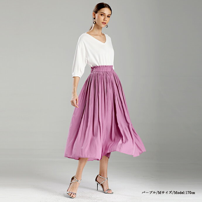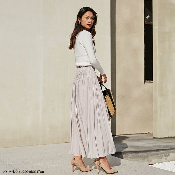 『在庫一掃SALE』『GINGER掲載アイテム×消しプリーツスカート』定番 ロングスカート シンプル 無地 ヴィンテージ サテン フレアスカート 上品 プリーツスカート ウエストゴム マキシ丈スカート レディース スカート カジュアル 大人可愛い ロング丈 オシャレ[M便 1/1]162541