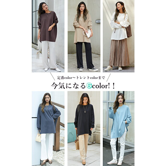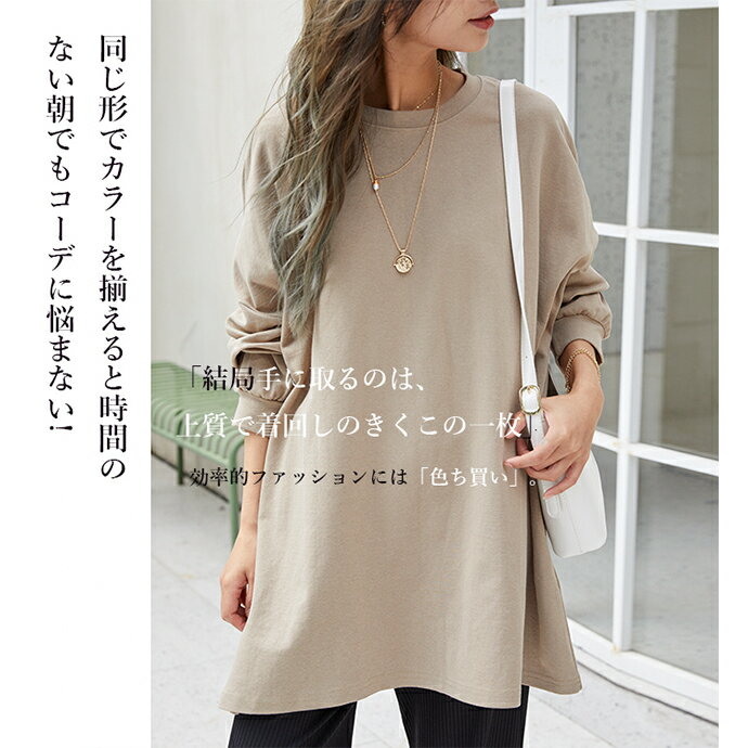 『永遠の定番×ビッグシルエット』 ゆったりプルオーバー トレーナー ドルマンスリーブ オリジナル 上品 レディース スウェット 無地 長袖 トップス チュニック 体型カバー ロングカットソー クルーネック オーバーサイズ 大きいサイズ オールシーズン 定番 大人気 162598