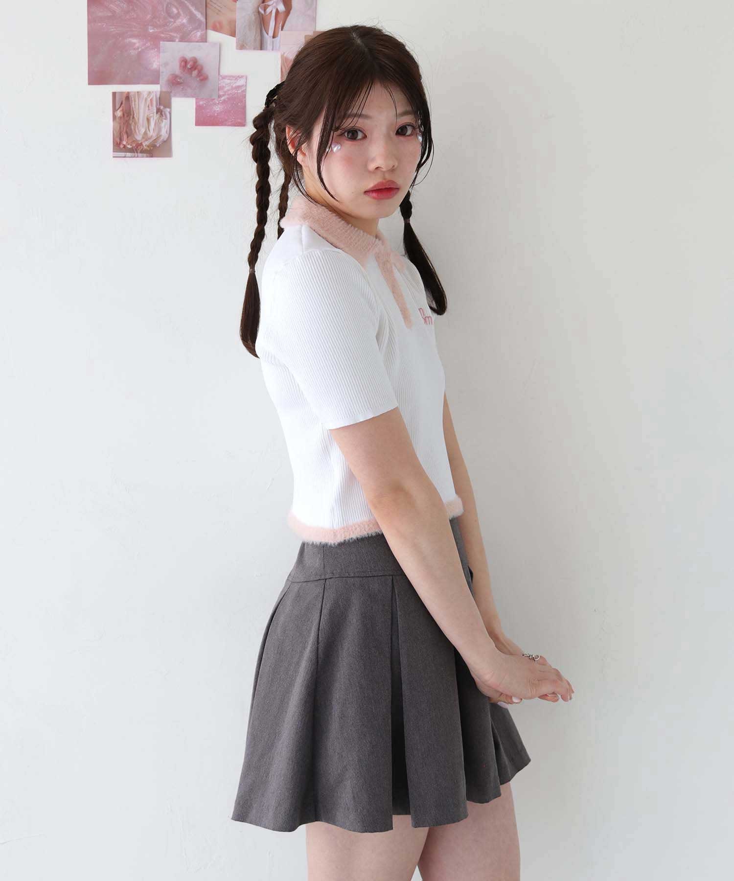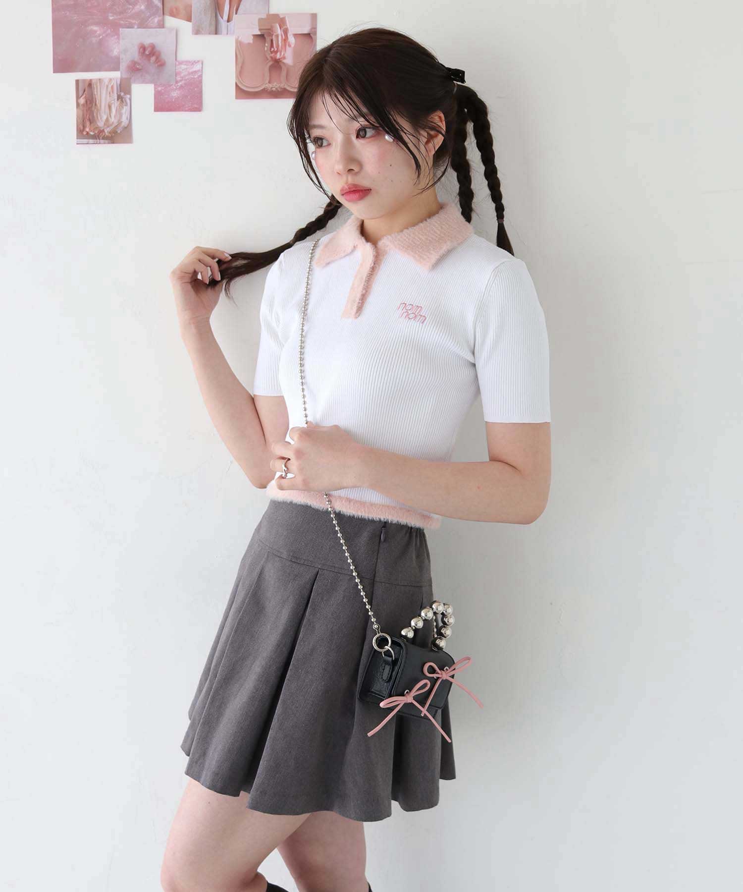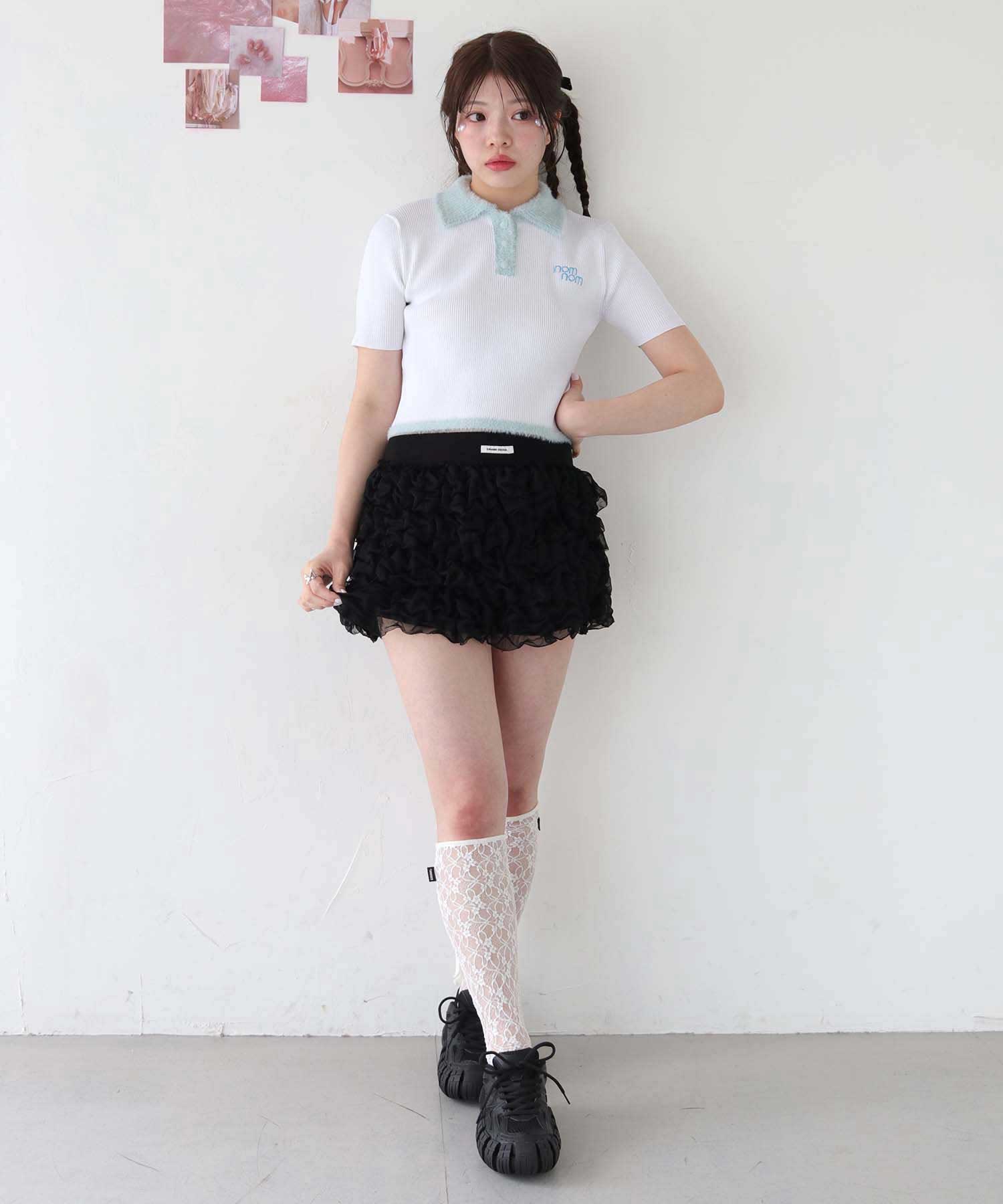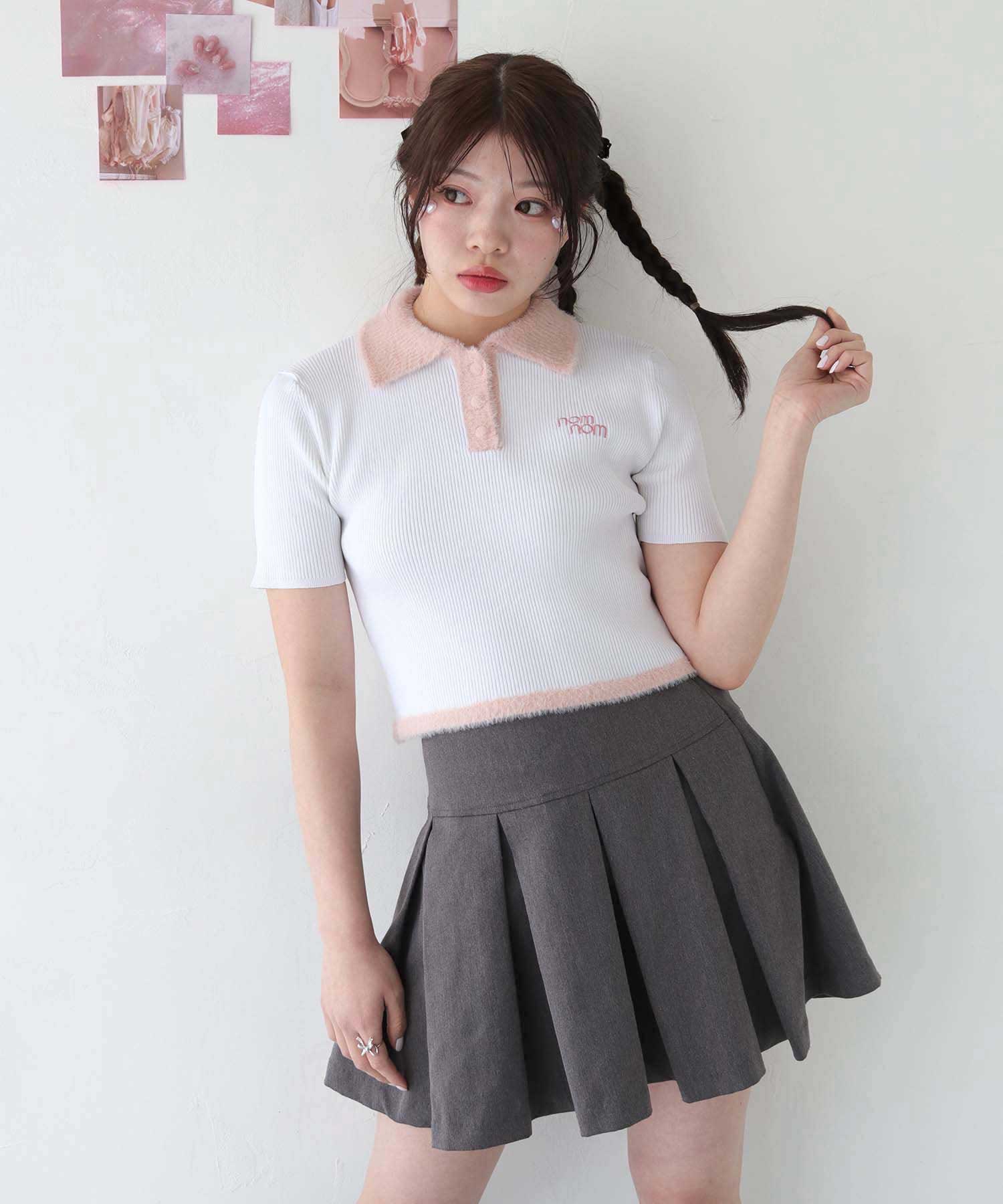 【60%OFF】シャギー デザイン ポロニット サマーニット ニット ポロシャツ 半袖 レディース 春 夏 秋 えりつきニット バイカラー ガーリー 可愛い 韓国ファッション フェミニン ふわふわ ロゴ ショート丈 ポロネック パステル 異素材 ポロネック