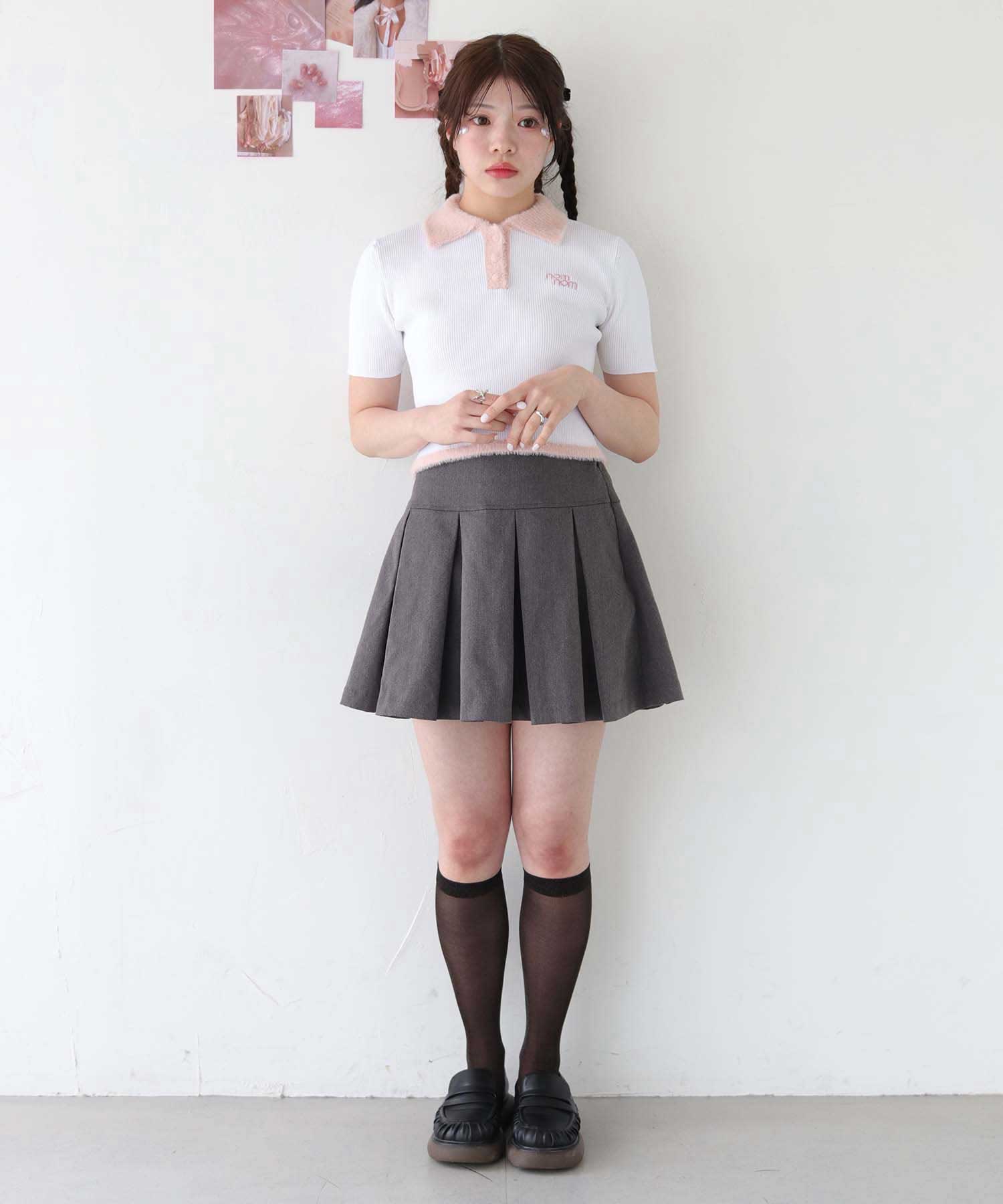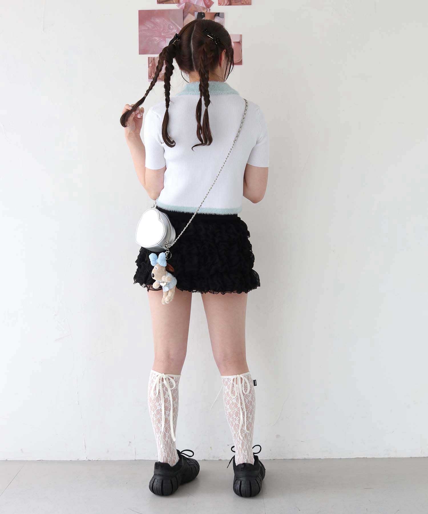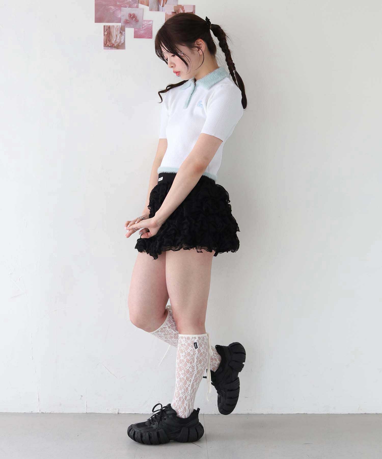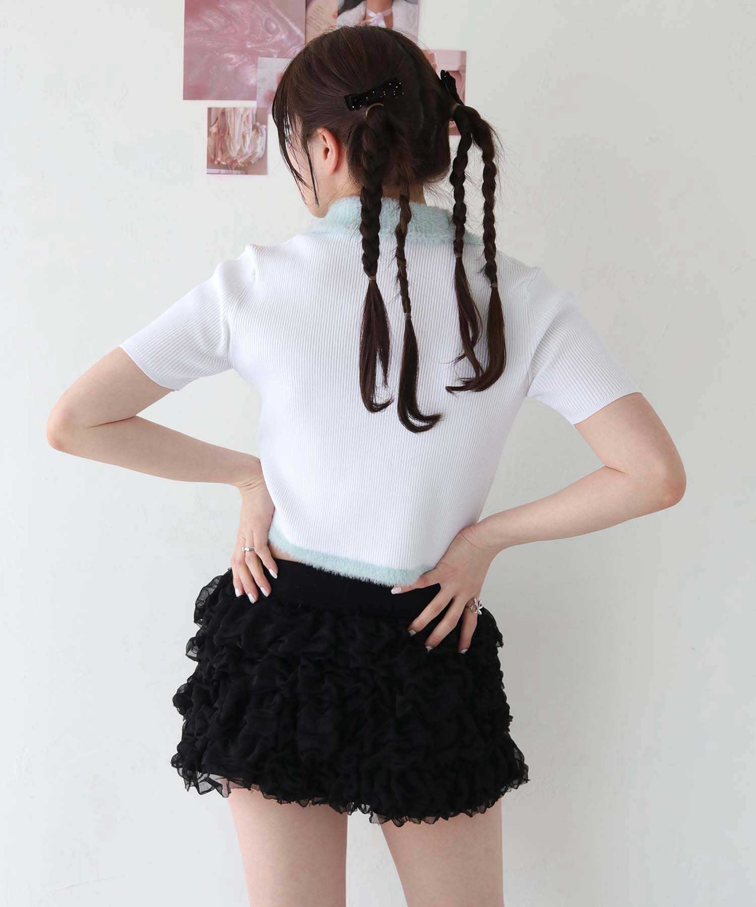 【60%OFF】シャギー デザイン ポロニット サマーニット ニット ポロシャツ 半袖 レディース 春 夏 秋 えりつきニット バイカラー ガーリー 可愛い 韓国ファッション フェミニン ふわふわ ロゴ ショート丈 ポロネック パステル 異素材 ポロネック