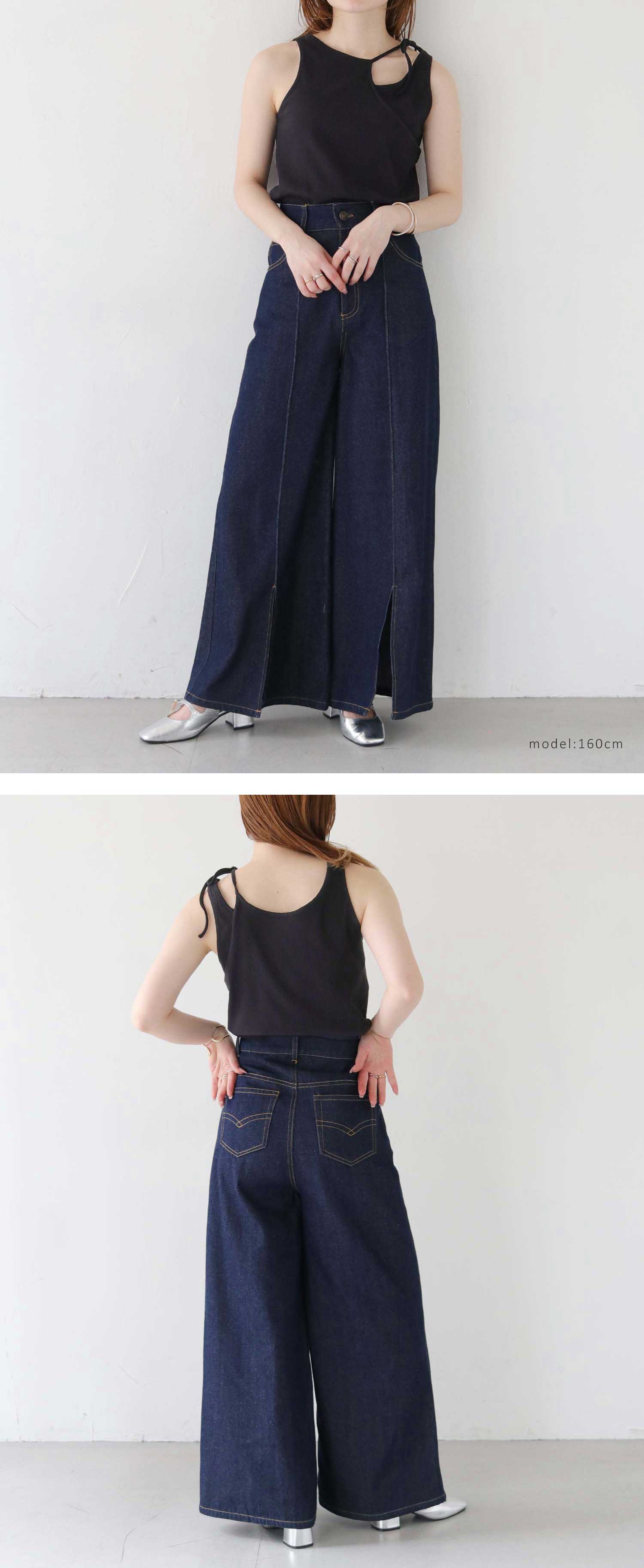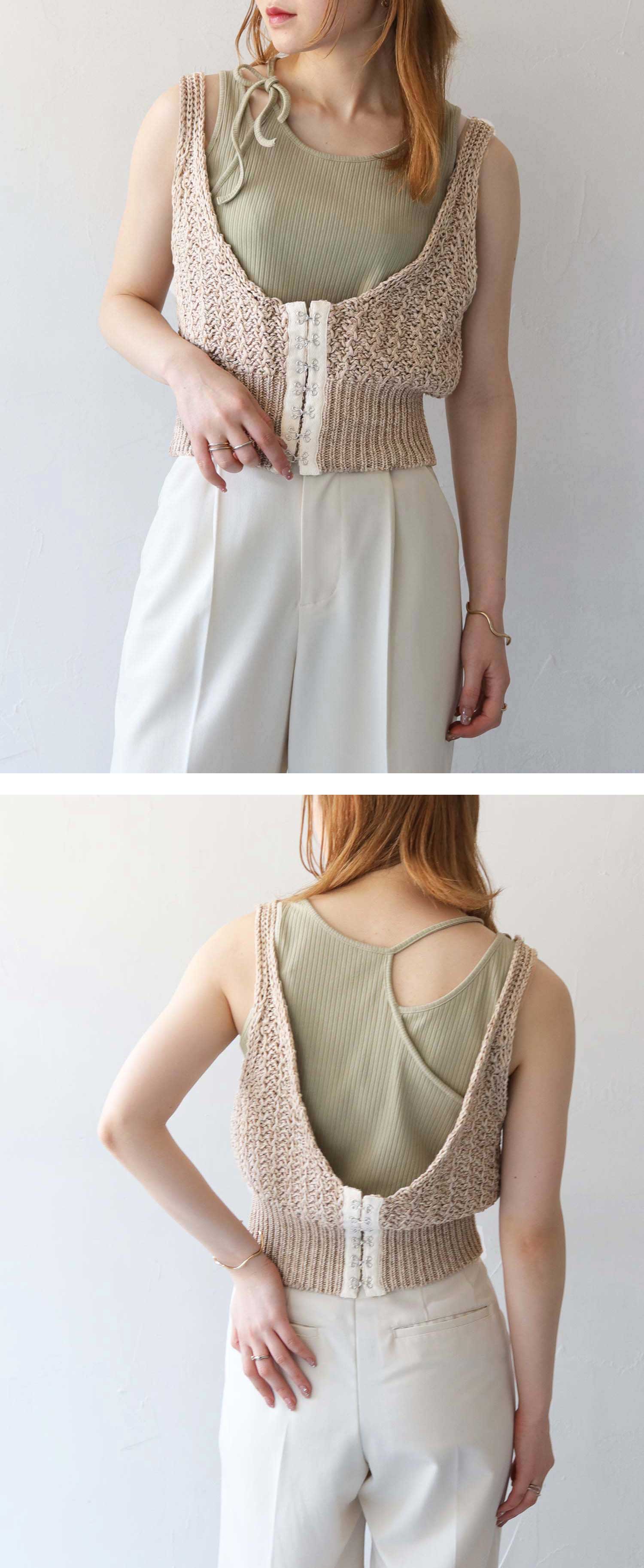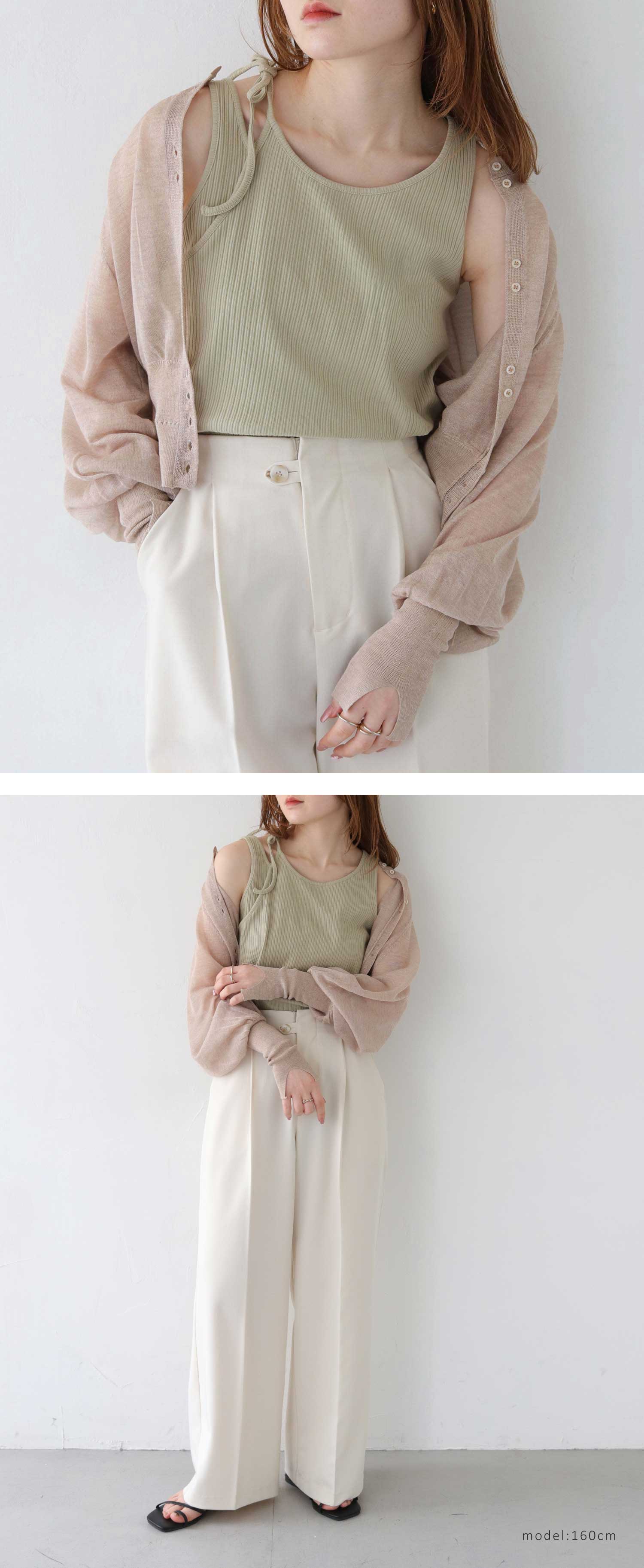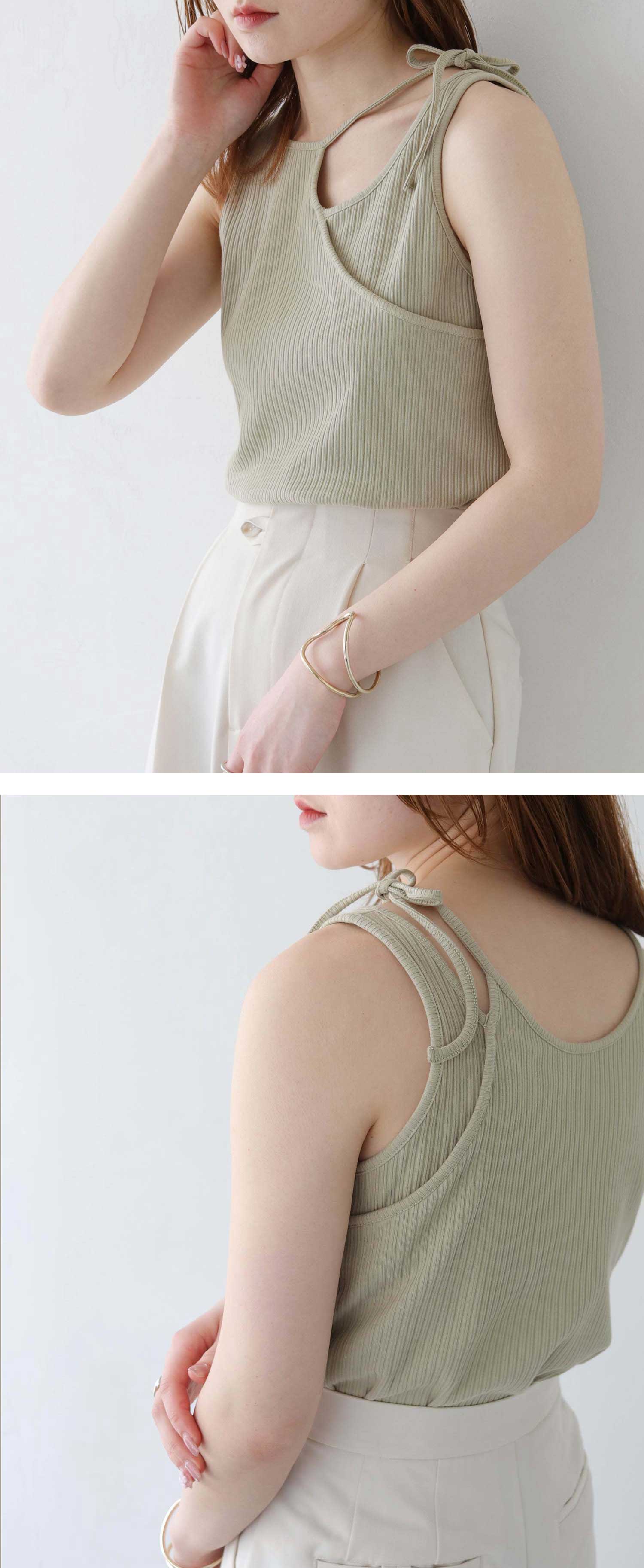 【C服袋対象】前後2WAY アシンメトリー リブ タンクトップ トップス ノースリーブ カットソー キャミ インナー レディース 春夏 秋冬 アシメネック リボン クルーネック 肩紐 おしゃれ シンプル きれいめ 大人可愛い 大人カジュアル フェミニン 上品 カットアウト