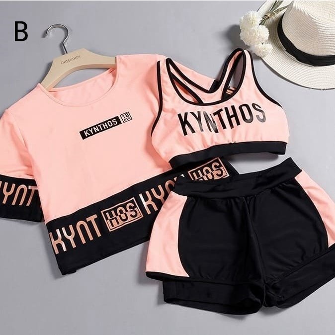 水着 レディース 体型カバー タンキニ 3点セット KYNTHOS トップス&ブラ&ショートパンツ UVカット 速乾 通気性 夏用 ジム ヨガにも最適 スポーツウェア ヨガウェア セットアップ レディース 夏 3色展開 M-2XL 送料無料