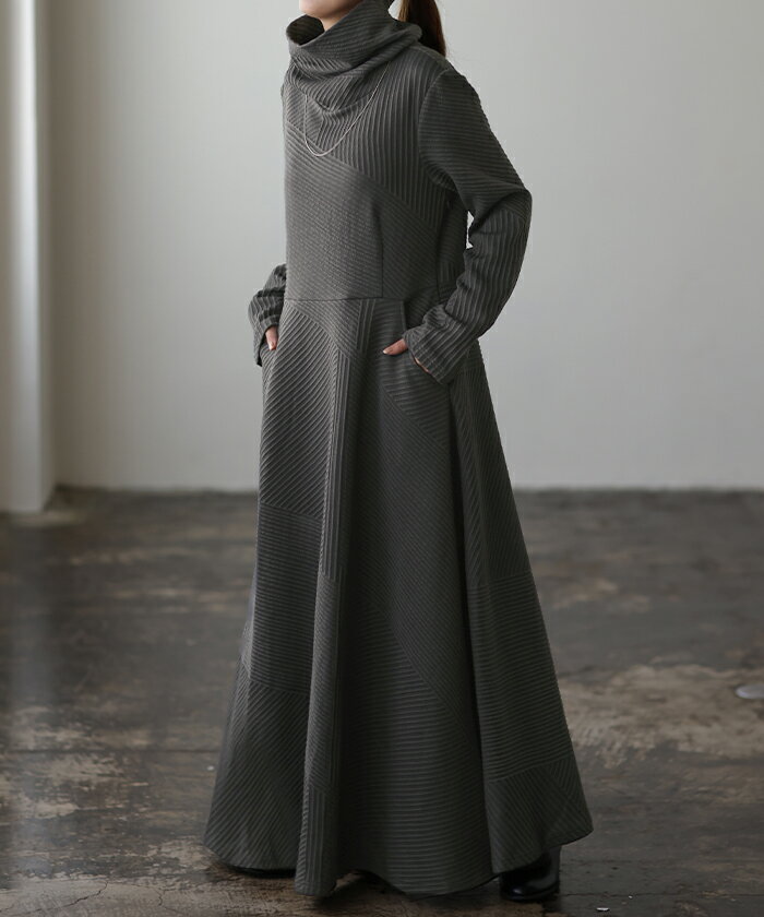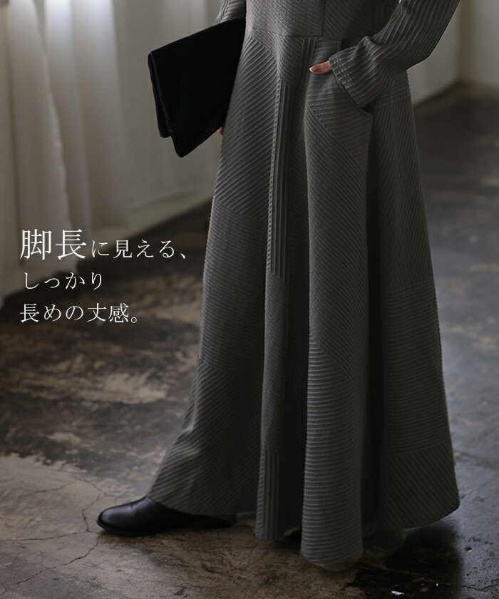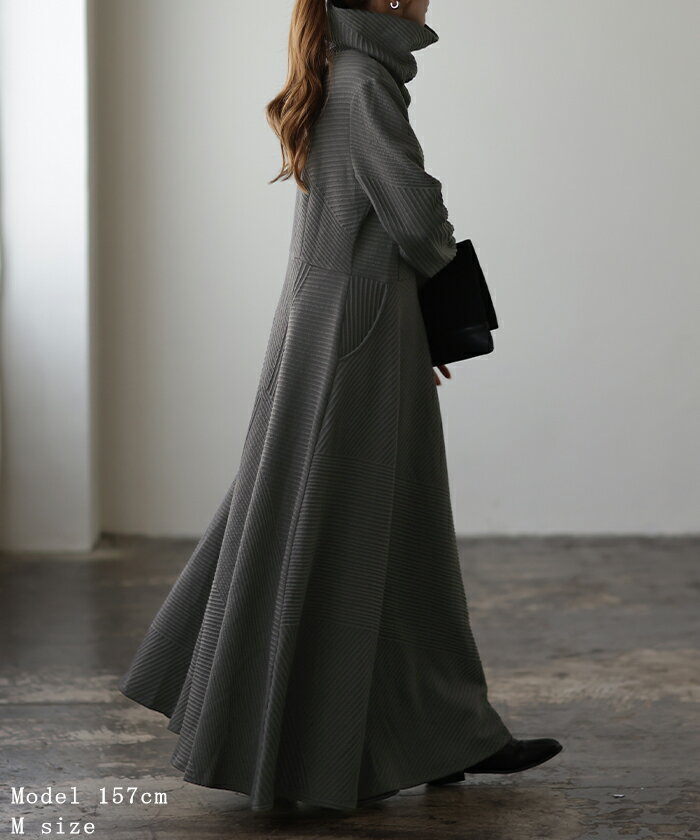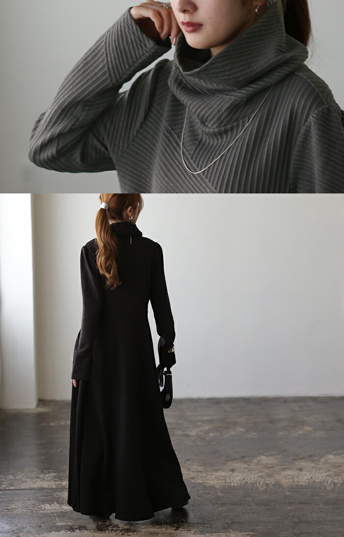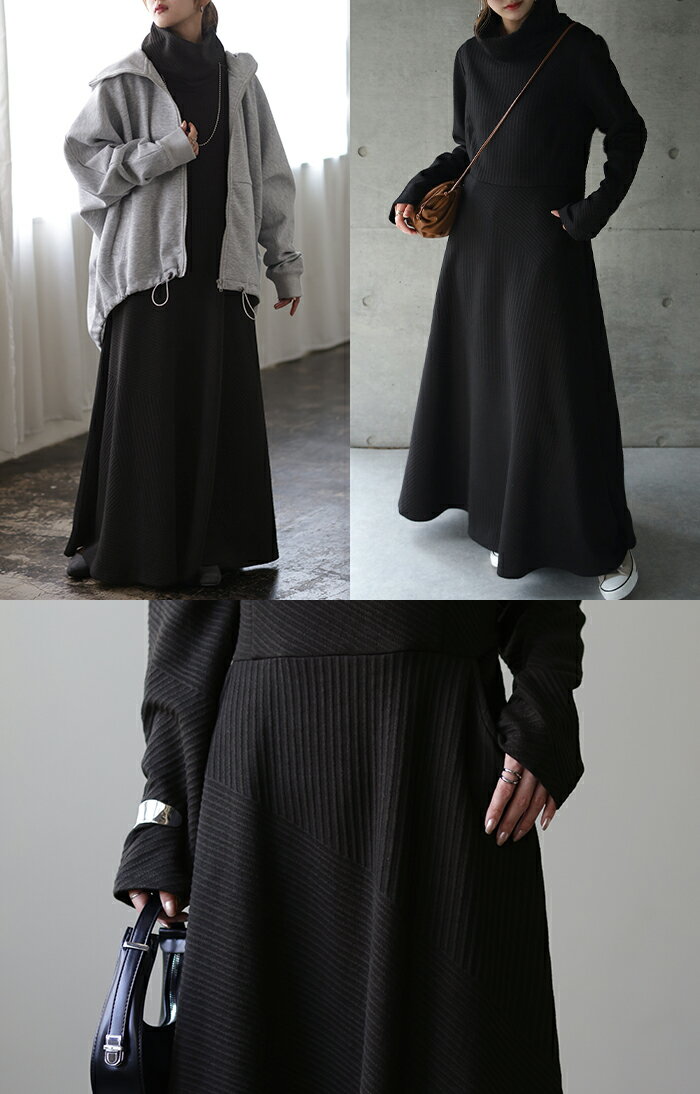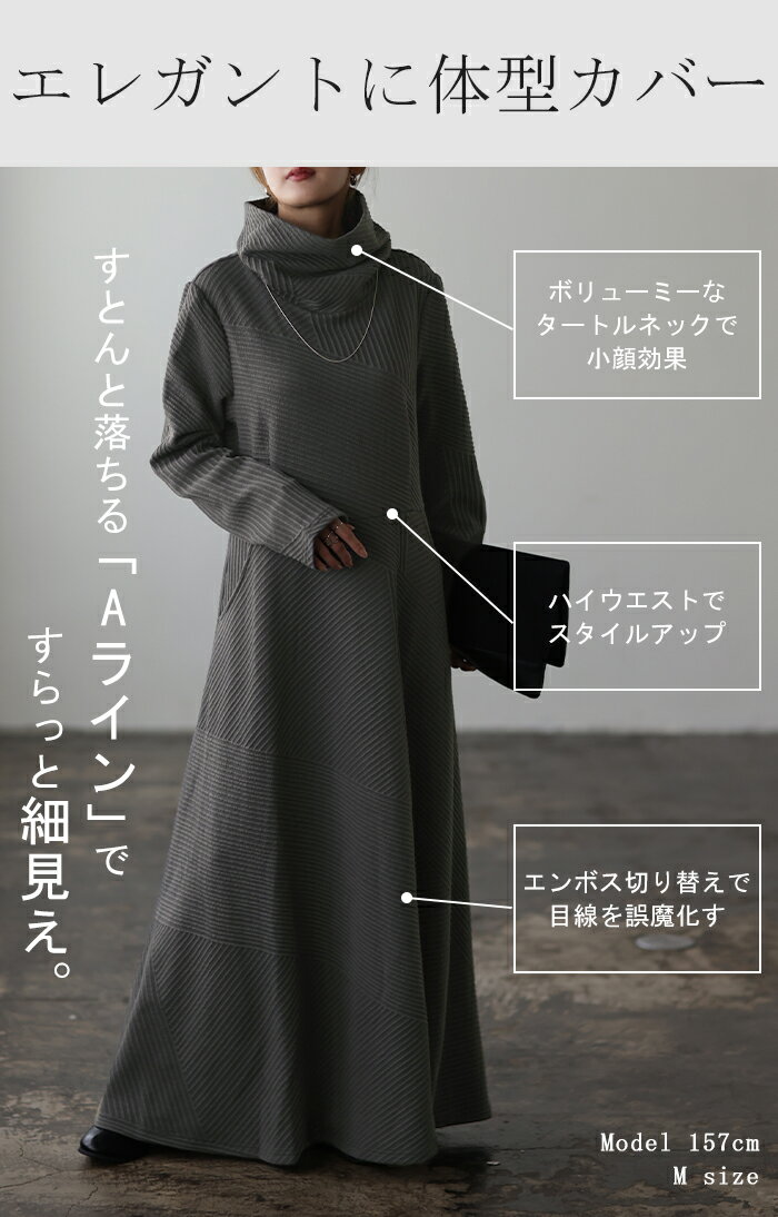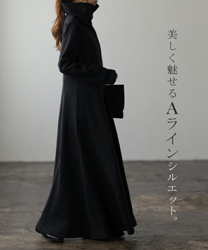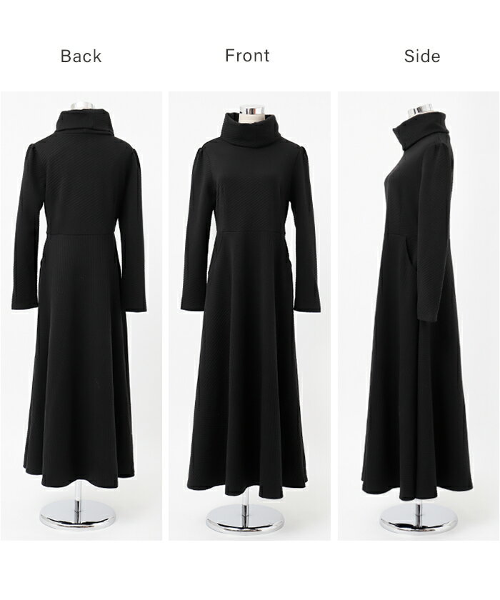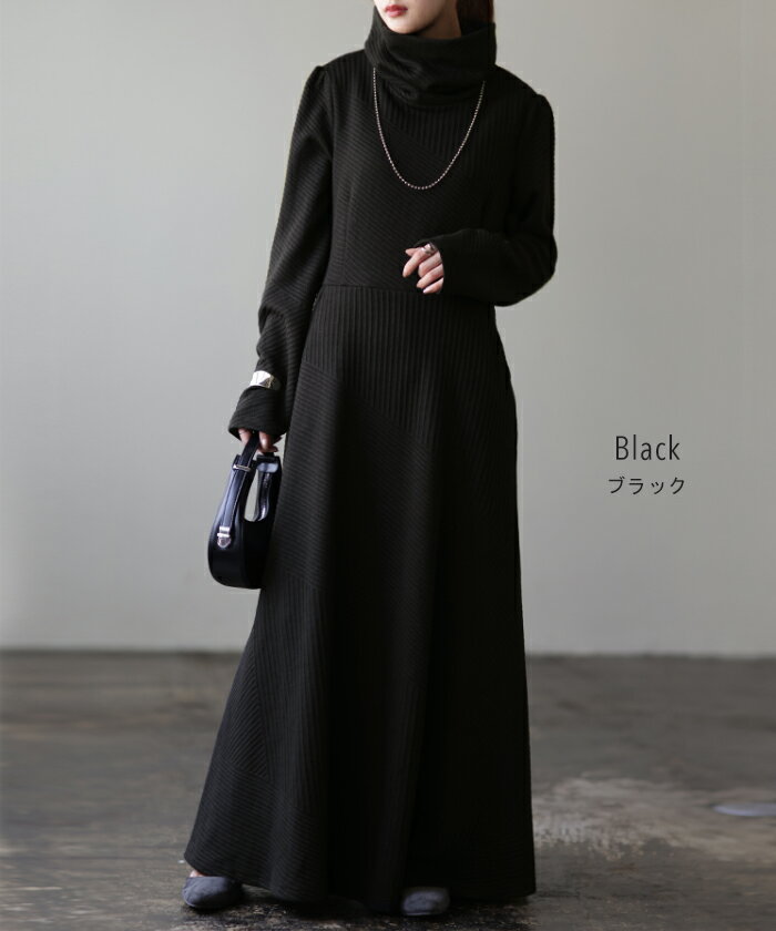 ワンピ 「 細くみえる」ロングワンピース 大きいサイズ 【あす楽】 Iライン 長袖 ワンピース オフタートル ロングワンピ タートル マキシ フレアワンピース Aライン タートルネック フォーマル シンプル きれいめ 小顔 ブラック 黒 秋 冬 お呼ばれ HUG.U