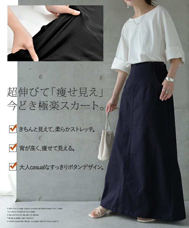 スカート ロングスカート マキシスカート ベイカースカート 【あす楽】 ロング マキシ ベイカー 体型カバー Aライン フレア フレアスカート 無地 シンプル チノ ミリタリー レディース アウトドア 黒 カーキ ネイビー ベージュ 大きいサイズ 春 夏 HUG.U