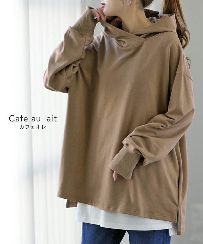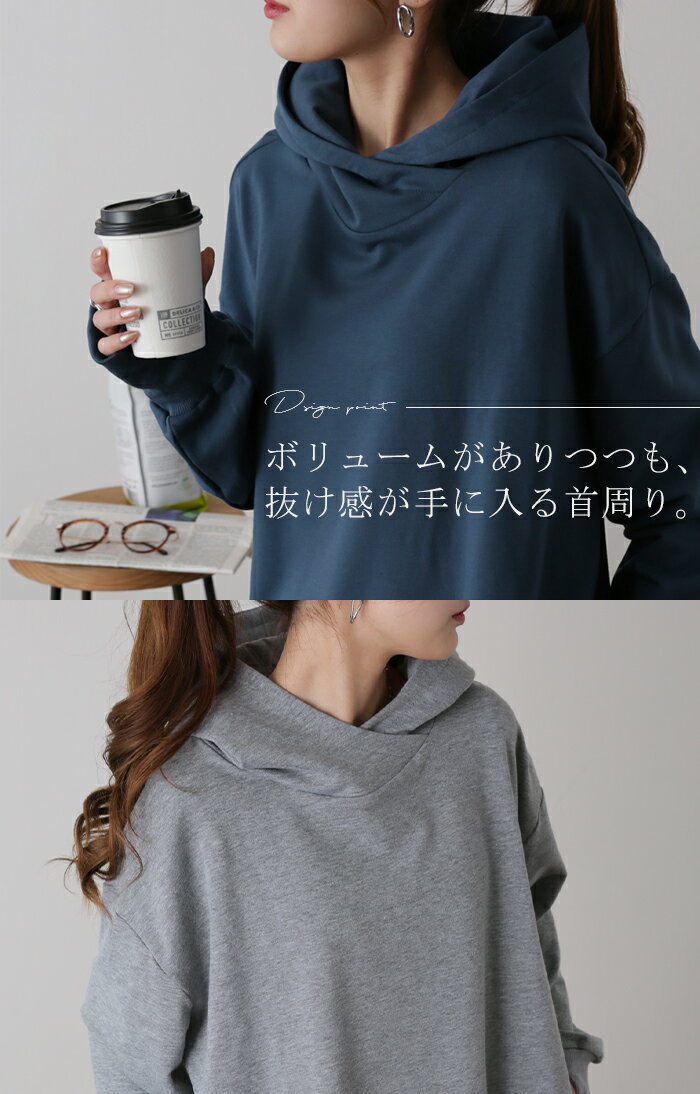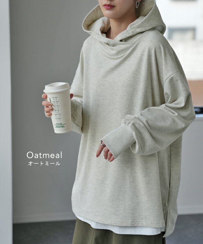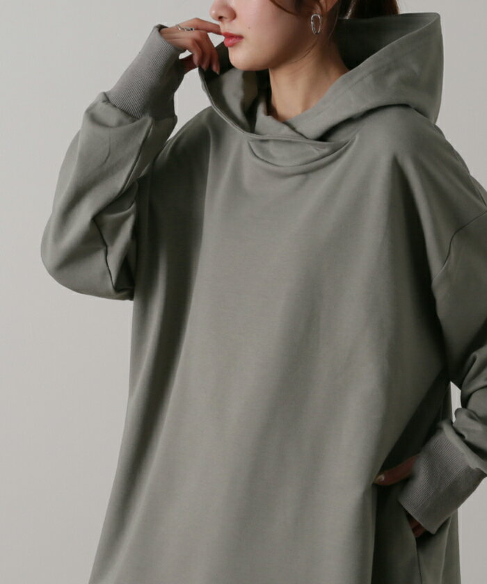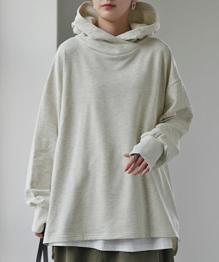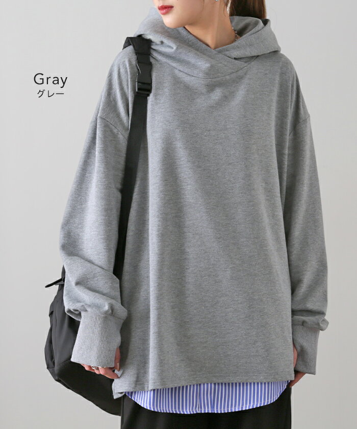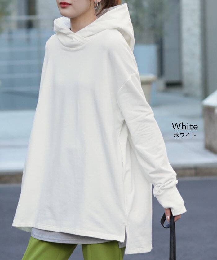 パーカー レディース ニュアンスカラー トレーナー 【あす楽】 スウェット スエット カットソー トップス プルオーバー スリット 指穴 ビッグ ビッグシルエット ビック ドロップショルダー フーディー 大きいサイズ 黒 グレー 白 青 春 夏 HUG.U